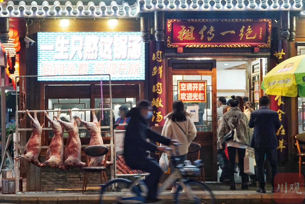“几位里面坐嘛,羊肉新鲜得很!”又到立冬,成都小关庙街的商户已经忙碌起来。11月7日,川观新闻记者刚走进小关庙街路口,四周便传来羊肉汤独有的鲜味。这条百米的街上,汇聚了数家知名羊肉汤锅馆,是成都知名的“羊肉一条街”,也是不少成都人心中品尝羊肉汤的首选之地。