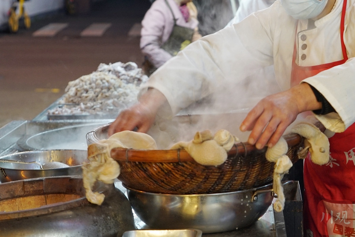 餐馆员工晾晒热气腾腾的羊肚
