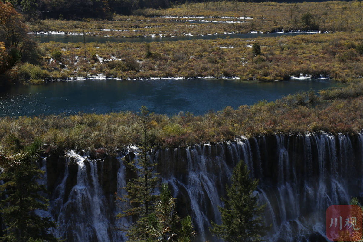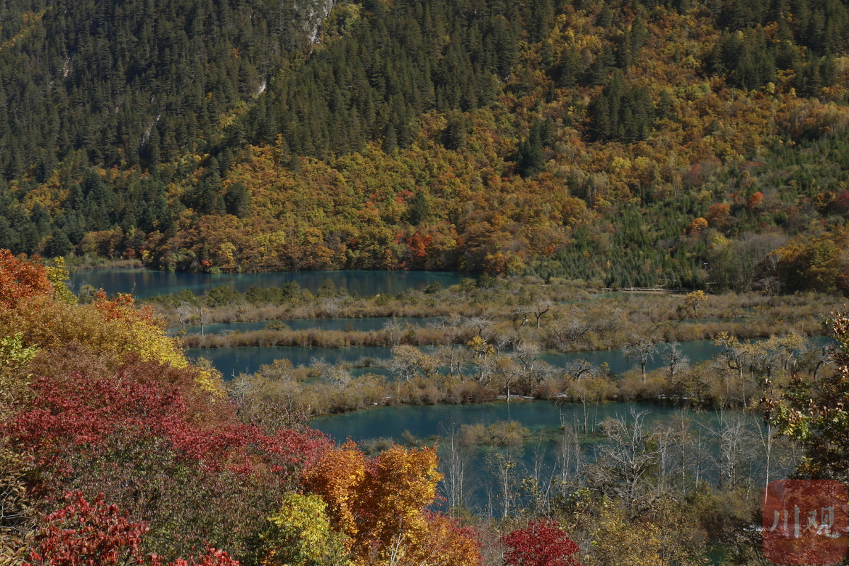 青山对出,雪峰耸峙;层林染金,红楸点缀;彩池迤逦,飞瀑震天。11月2日,九寨沟风景名胜区,各种秋天美景扑面而来,游客感叹:美丽的童话世界九寨沟,又回来了。