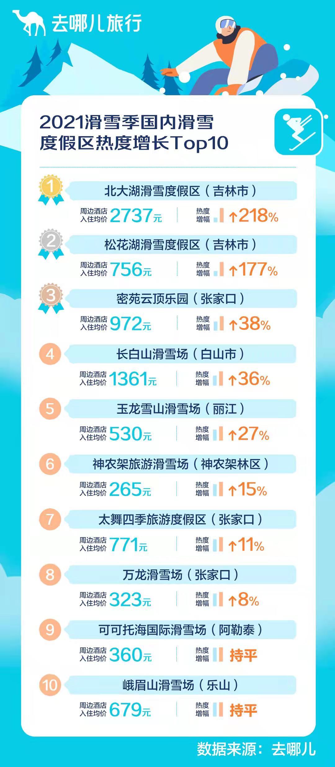随着国内滑雪度假区配套设施日益完善,滑雪场已经由运动场发展成为度假目的地。去哪儿数据显示,2021年滑雪季开板后,四成以上游客住宿时间超2晚,国内各大滑雪场周边酒店的平均入住价格为401元,比2019年同期贵了20元左右。