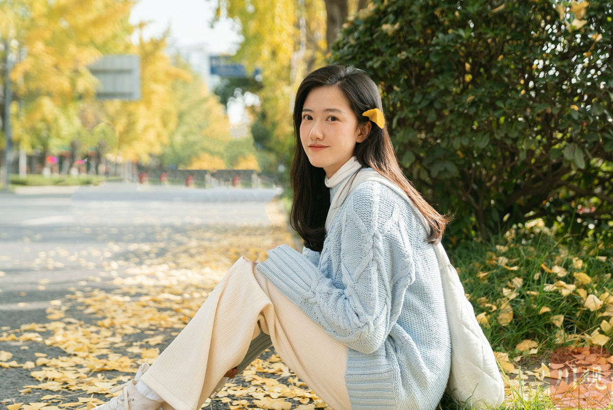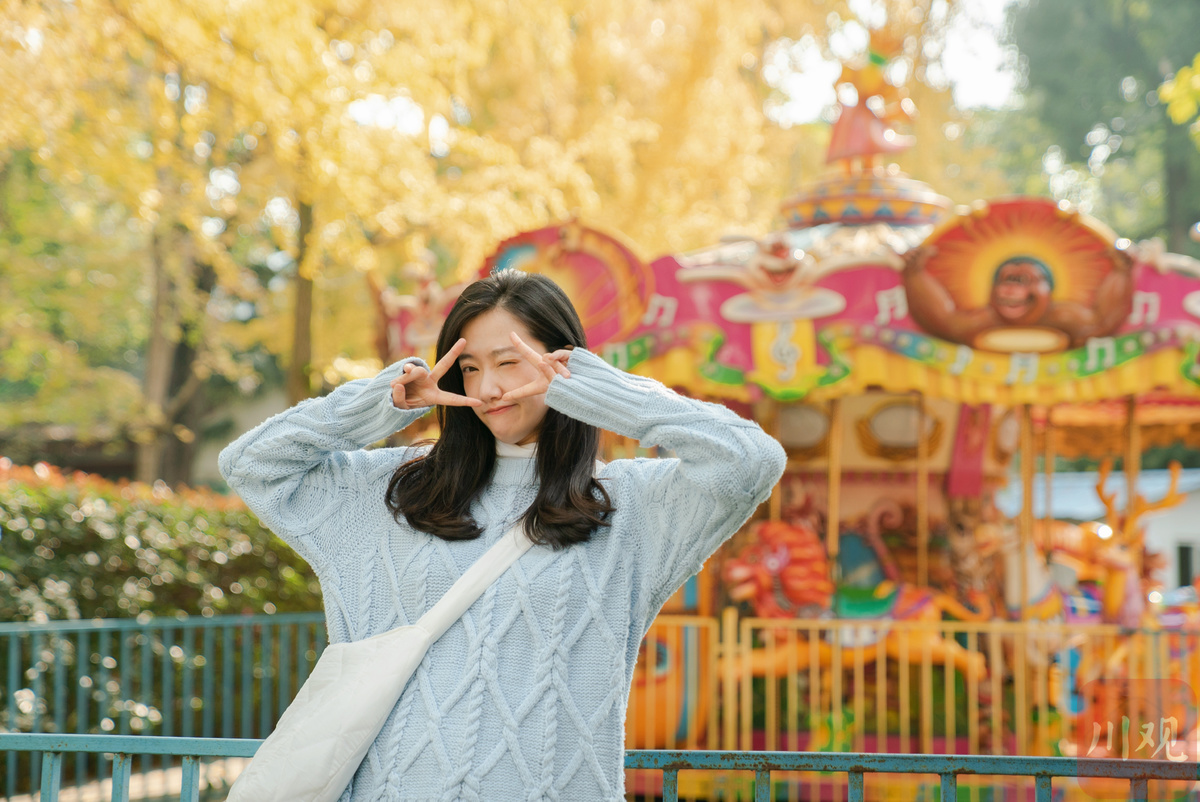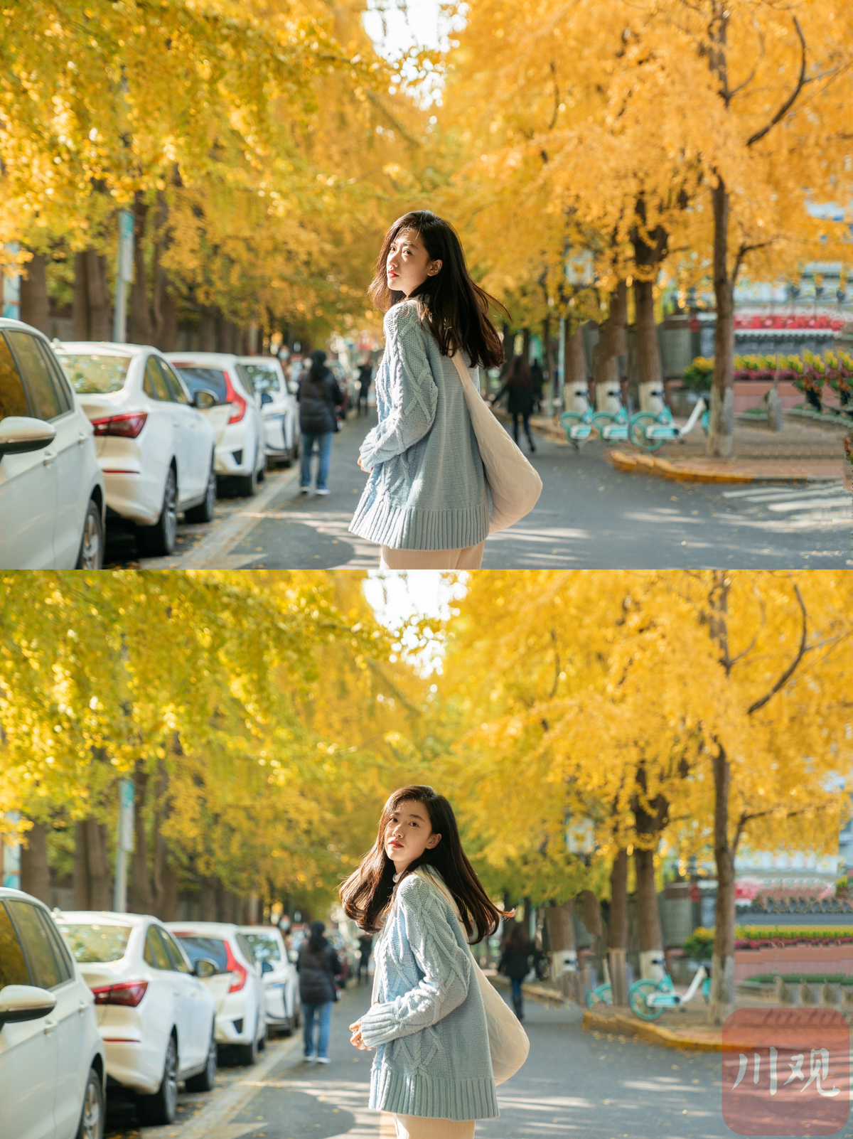 但是,人民公园的银杏树体积偏大,不太适合人像摄影。