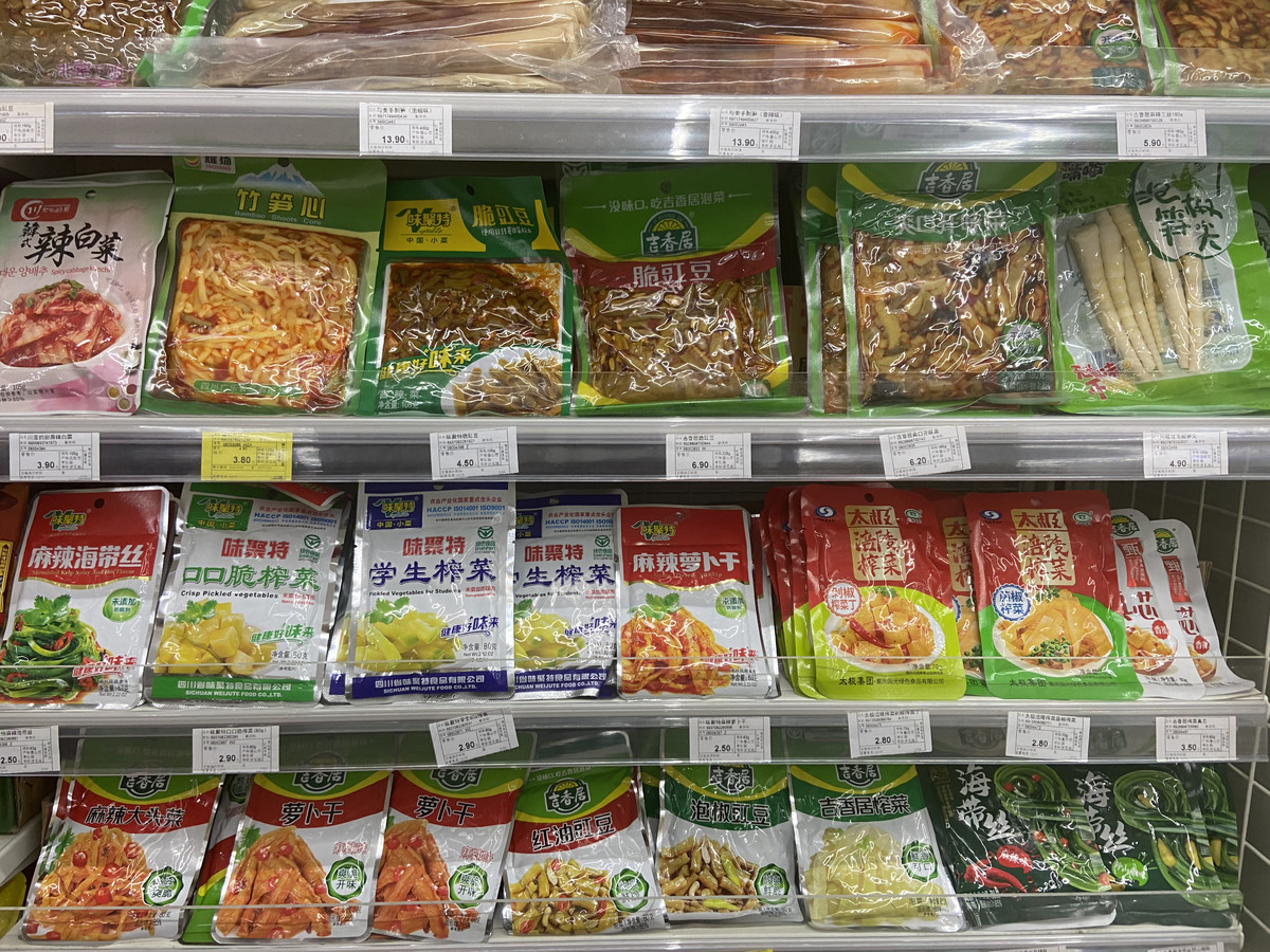 线下的反应速度较慢。川观新闻记者来到几家商超,货架上除了乌江涪陵榨菜,还有吉香居、味聚特等四川榨菜品牌,售货员表示,这些榨菜近期还未涨价。一连锁超市业内人士告诉川观新闻记者:“涪陵榨菜本次涨价幅度有点大,我们正在做市场调查,之后再决定如何反应。部分品牌也有消息说可能会调价,但还没有正式通知。”