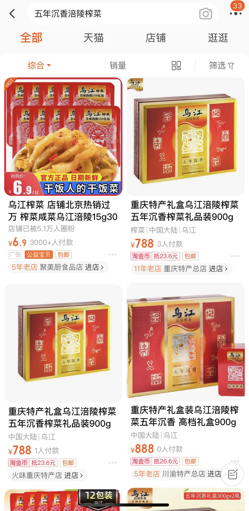 在电商平台上,川观新闻记者搜索到了几款正在售卖的涪陵榨菜五年沉香礼盒,售价虽不在千元以上,但也在788元至888元。2年前,一位博主购买了这款净含量900g的榨菜,给出了“确实更好吃,但并没有好吃非常多”的评价。据中新经纬旗下“V观财报”,涪陵榨菜证券部工作人员回应称,沉香款是公司一直有的产品,用的是腌制比较久的榨菜做成的,不是新推出的产品。888元五年沉香榨菜是作为礼品榨菜的品类进行销售,属于涪陵榨菜的高档款。