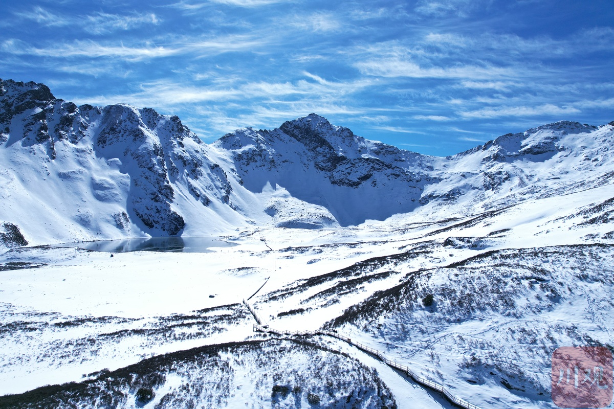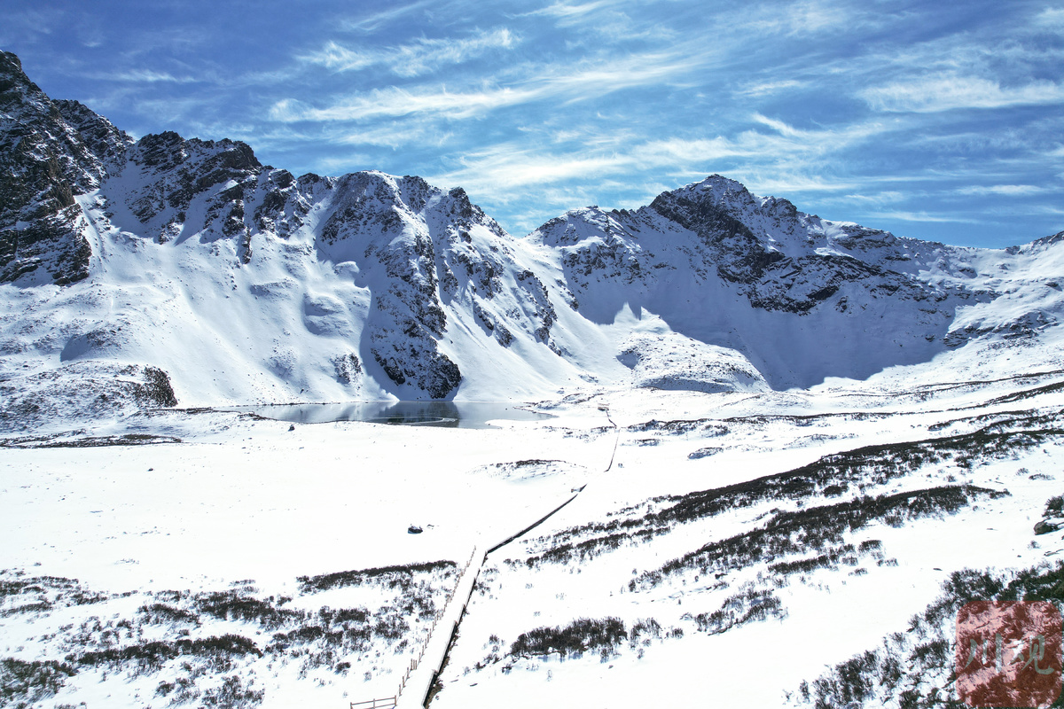 冬天的高原海子嵌在雪山之间。阳光下的海子默默对语群山,犹如对话于时间。沉默的海子怀抱着雪山的影子,似乎在昭示着某种永远无法触摸到的深度。