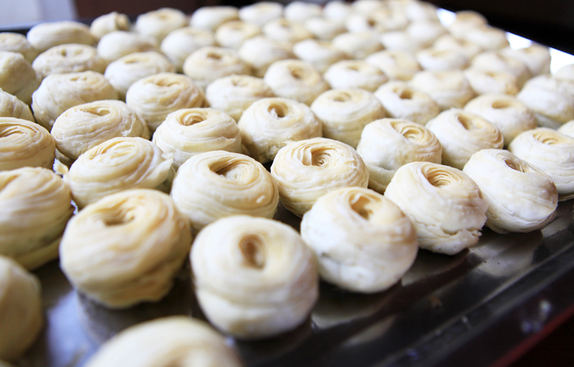 改良后的千层饼(龙眼酥)表面千层重叠,酥皮层次均匀,螺纺卷典清晰,油酥浓香,细腻爽口,一经问世便广受好评,后来兰俊超又将自家的千层饼(龙眼酥)取名为东坡园龙眼酥。