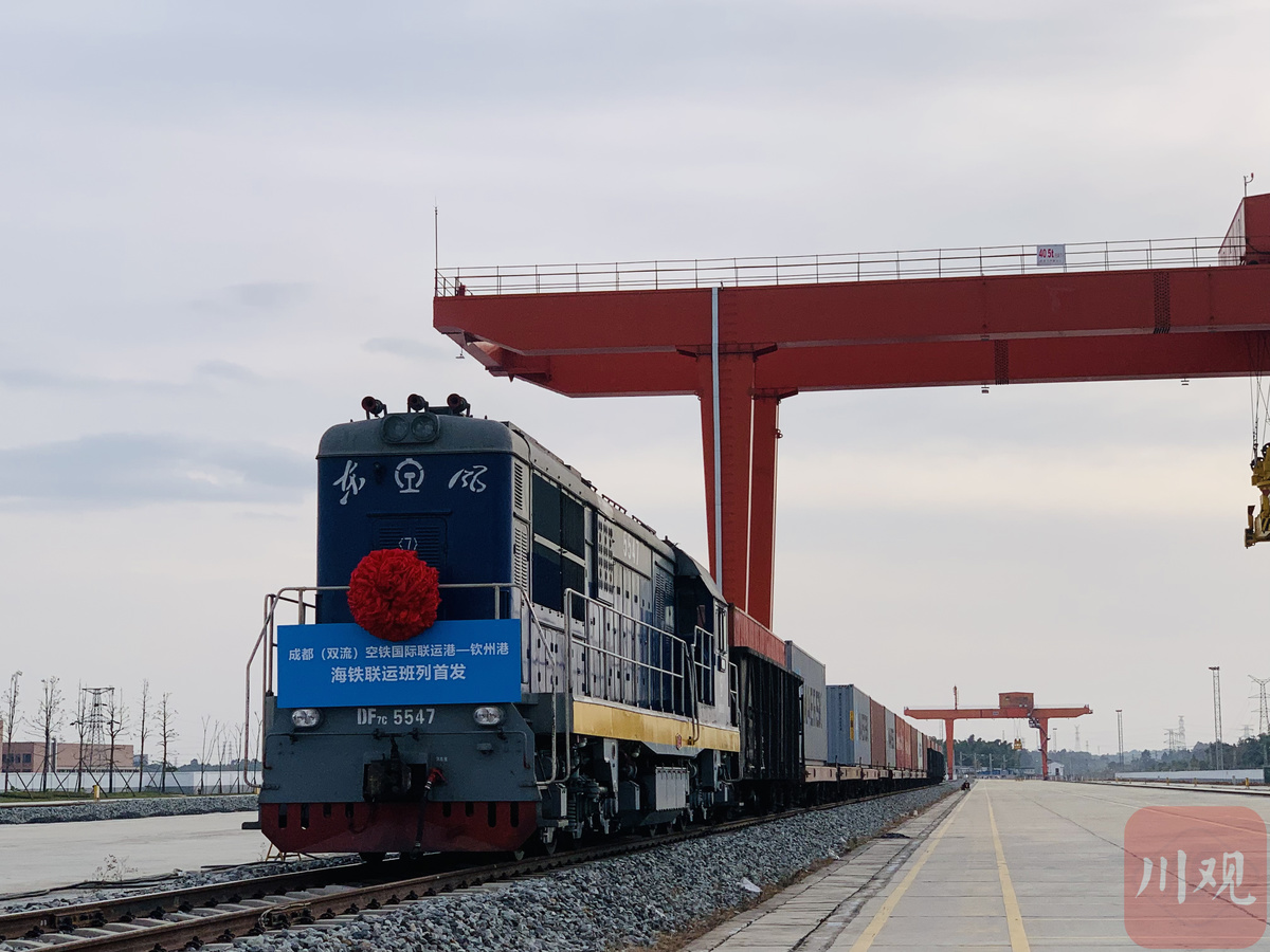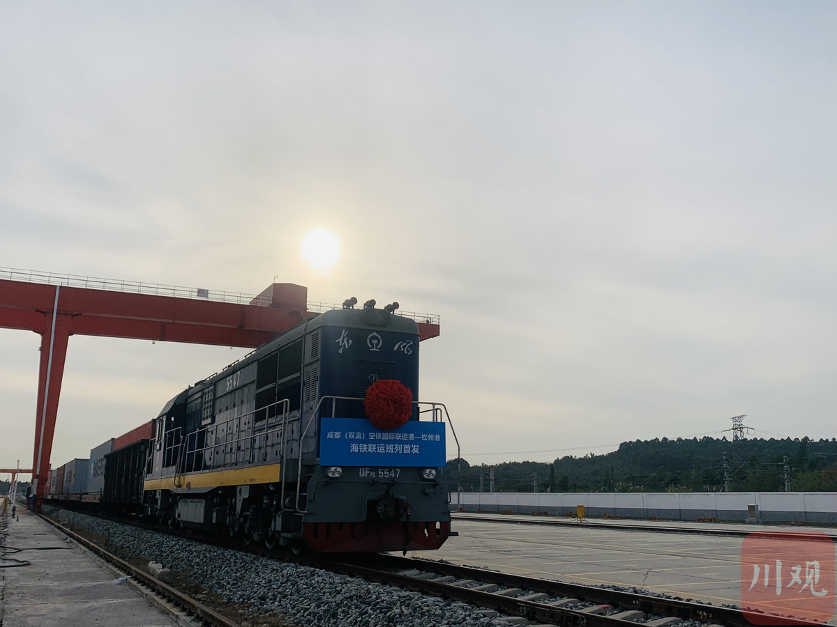 11月23日下午,随着嘹亮的汽笛声响起,从成都(双流)空铁国际联运港始发,经钦州港至东南亚的成都(双流)空铁国际联运港海铁联运班列首发开行。