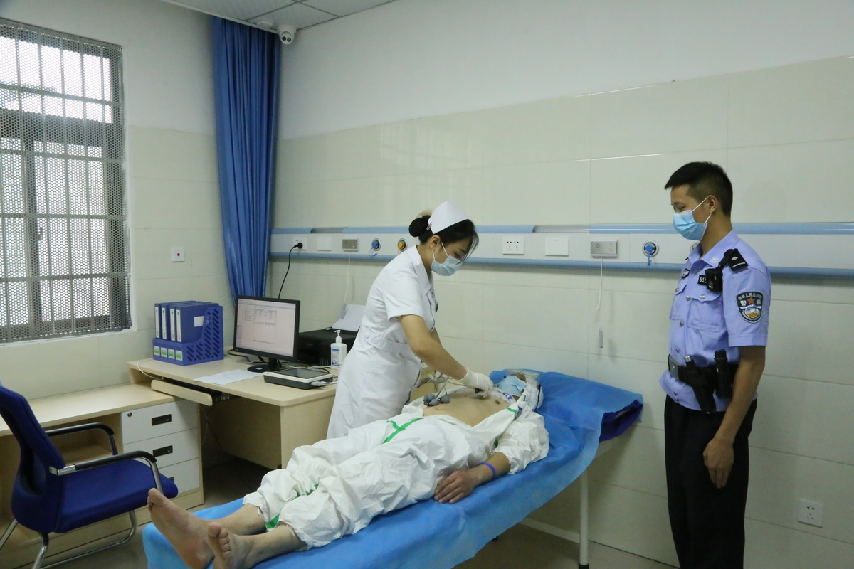 日前,深夜10点的省内江强制隔离戒毒所(以下称“省内江所”)内,传来一阵急促的呼救声。戒毒人员吕某突发腹痛剧烈,行走困难。值班民警立即通知所内值班医生,值班医生初步诊断为急性腹膜炎,需进一步深入检查。省内江所立即将吕某病情通报所地共建的医院,共建医院立即对其查血、腹部CT等检查,报告显示吕某为“空腔脏器穿孔”。共建医院专家对陈某进行了“剖腹探查+胃穿孔修补术”,术后吕某精神食欲良好,腹腔脏器得到了恢复。