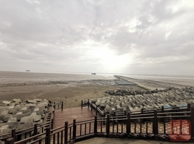 “大家快看,有好多候鸟!”从望远镜前转过身,一名参加“长江经济带及黄河流域省级党报全媒体行”的媒体记者喊了起来。镜头里,远处滩涂上成群的水鸟低飞嬉戏,几名渔民在滩涂上赶海,一派静谧和谐的景象。