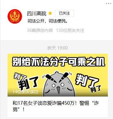 11月30日,记者从四川省高级人民法院获悉,近日,泸州市叙永法院宣判一起诈骗案。叙永法院经审理认为,被告人朱某与17名女子谈恋爱,期间以非法占有为目的,虚构事实、隐瞒真相,诈骗450万元,数额特别巨大,其行为已构成诈骗罪。法院依法判处朱某有期徒刑十四年,并处罚金人民币50万元。