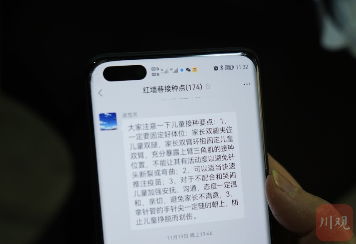 为提高3-11人群接种效率,有接种点自制“儿童接种要点”传授护士。最近一周,在成都市青羊区红墙巷新冠疫苗临时接种点的晨会上,青羊区新华少城社区卫生服务中心预防保健科主任龚雪芹都会叮嘱护士4项接种要点:“1、请家长双腿夹住儿童双腿,家长双臂环抱固定儿童双臂,充分暴露上臂三角肌接种位置,不能让其有活动度以避免针头断裂或弯曲;2、适当快速推注疫苗;3、对不配合和哭闹儿童加强安抚、沟通,态度温和,亲切,避免家长不满意;4、拿针管的手针尖一定随时朝上,防止儿童挣脱而划伤。”龚雪芹说,考虑部分娃娃哭闹、好动,她就自制了这份接种要点,帮孩子和医护人员防范潜在风险,高效推进接种工作。