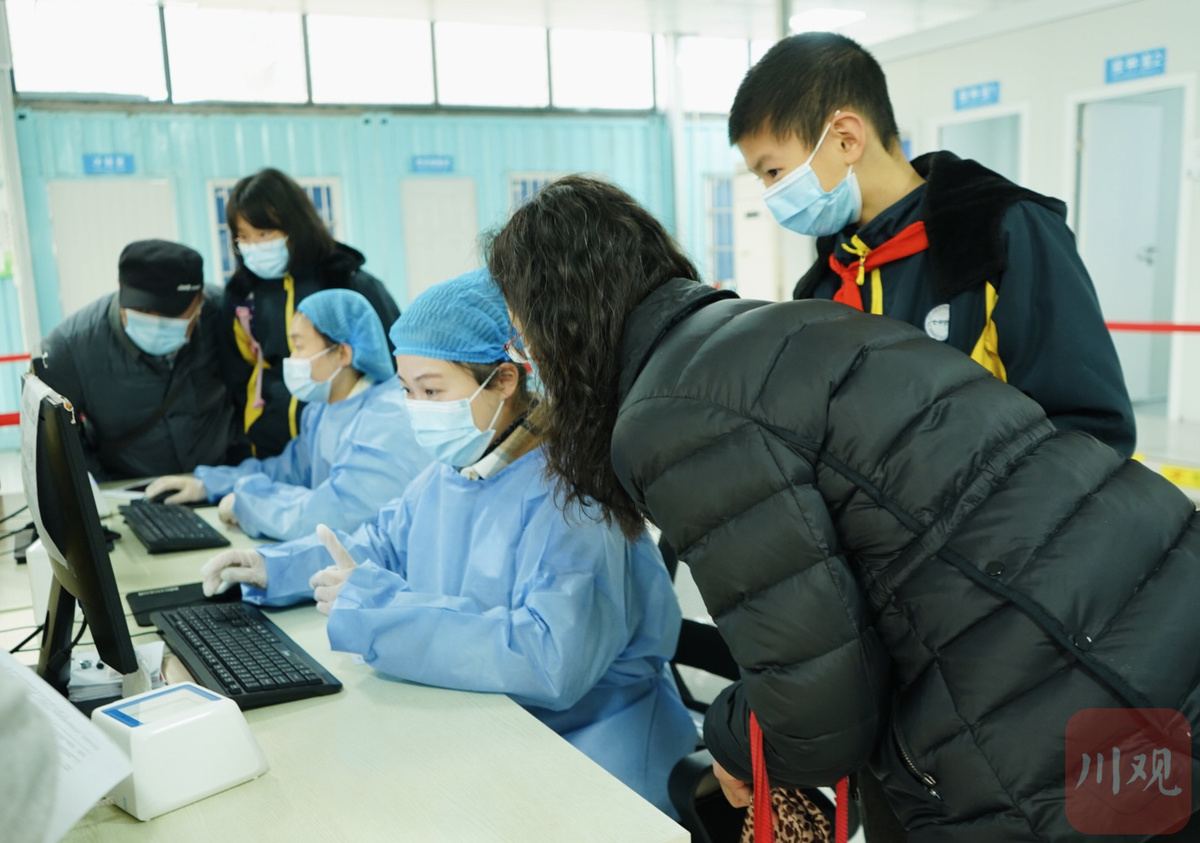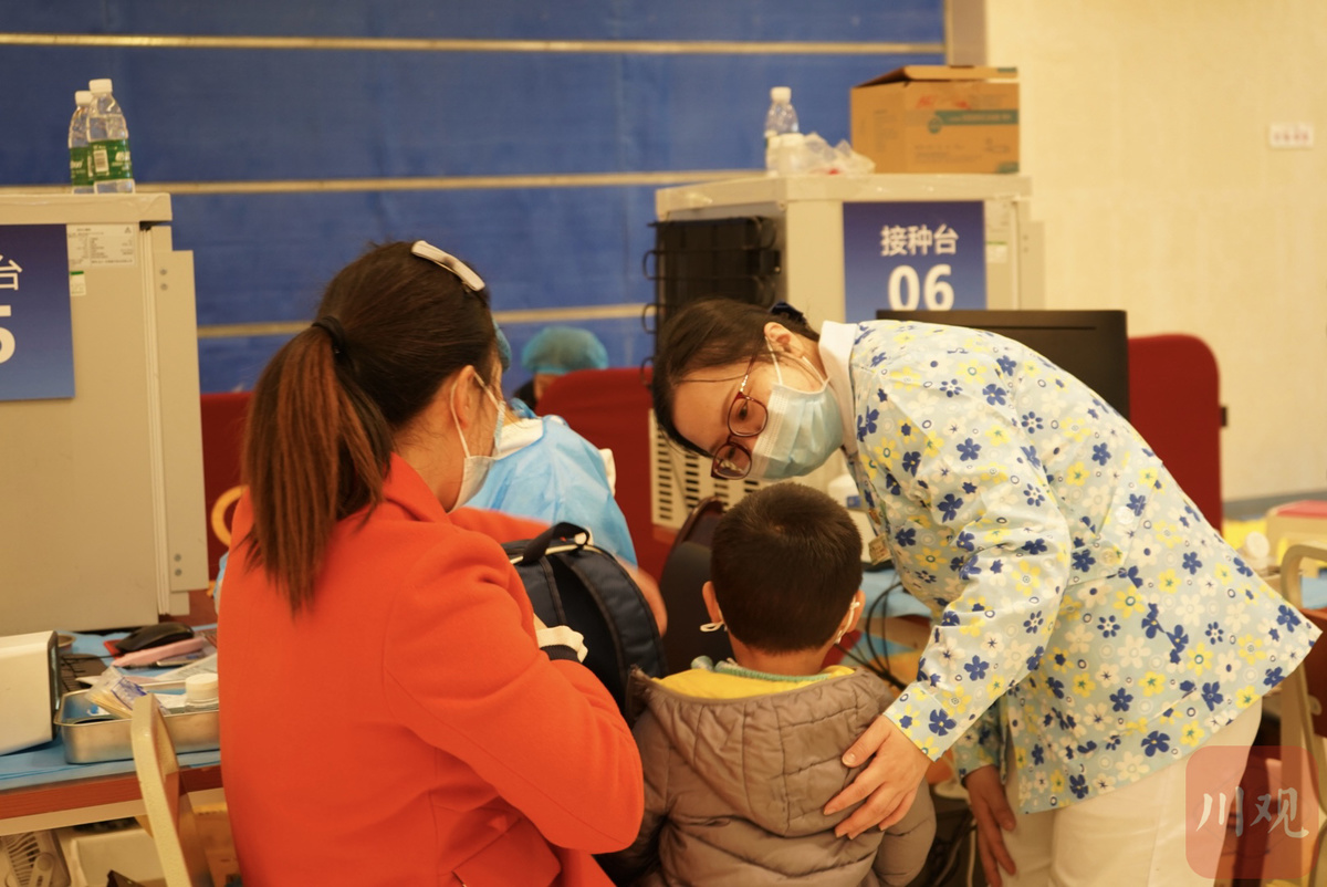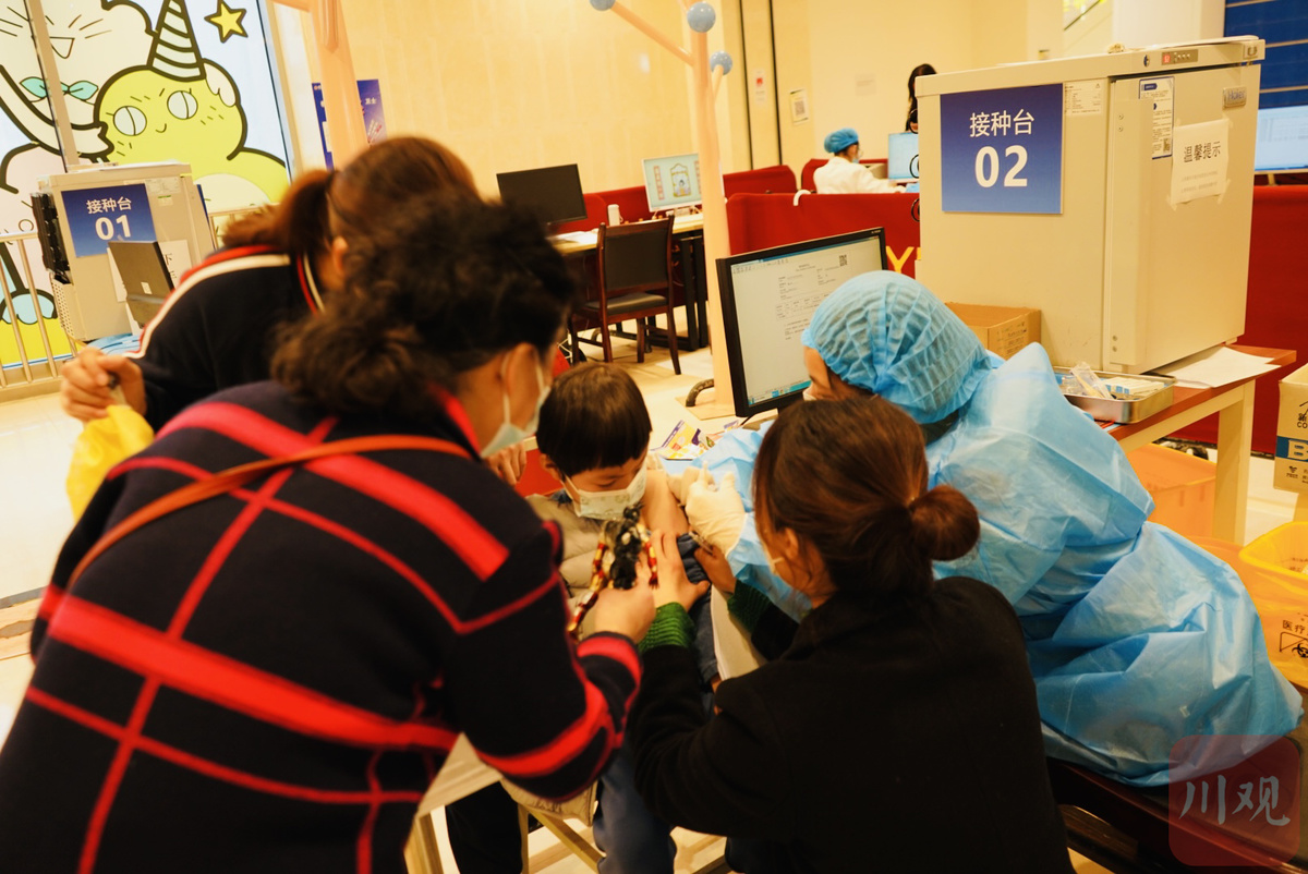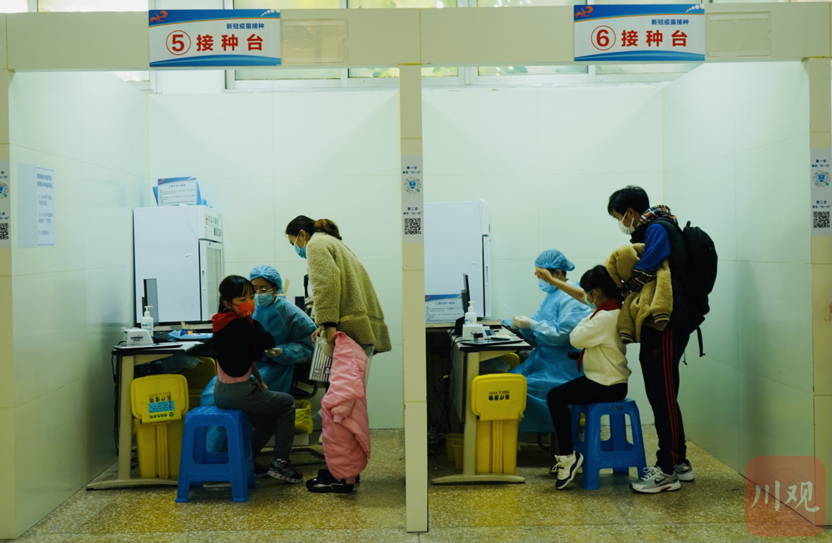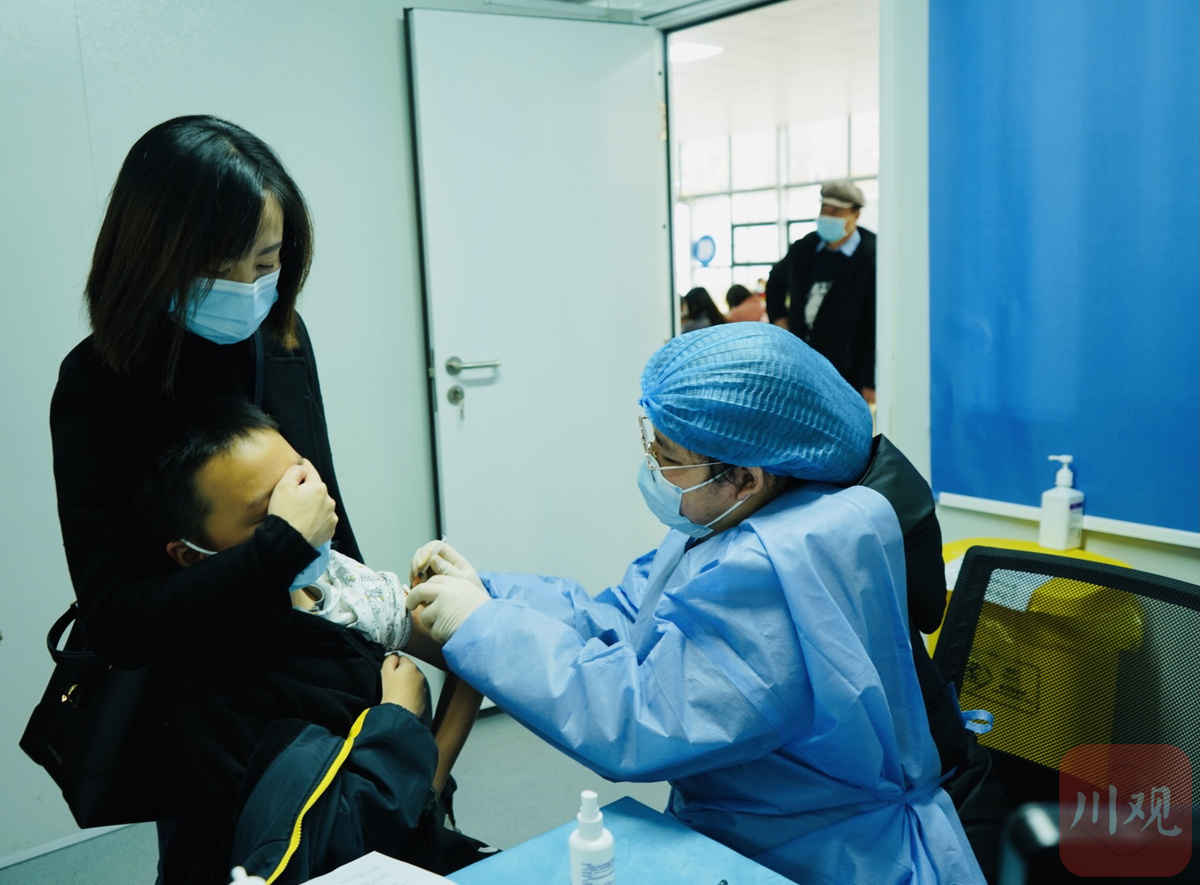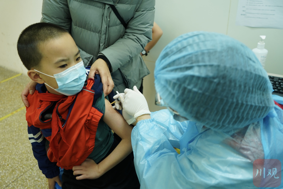 成都市青羊区红墙巷新冠疫苗临时接种点内,娃儿正在打疫苗。魏冯摄