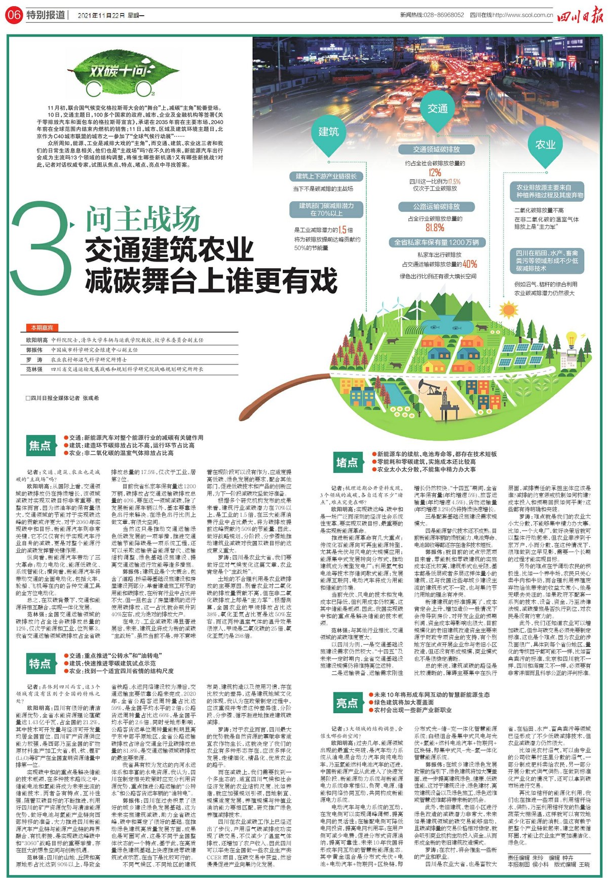 众所周知,能源、工业是碳减排大戏的主角,而交通、建筑、农业这三者和我们日常生活息息相关,他们所在的领域也会是“主战场”吗?在不久的将来,新能源车汽车出行会成为群众的普遍消费行为么?三个领域的结构调整,将催生哪些新机遇,又有哪些新挑战?川观新闻记者对话三个领域的权威专家,从焦点、特点、堵点、亮点中试图寻找答案。