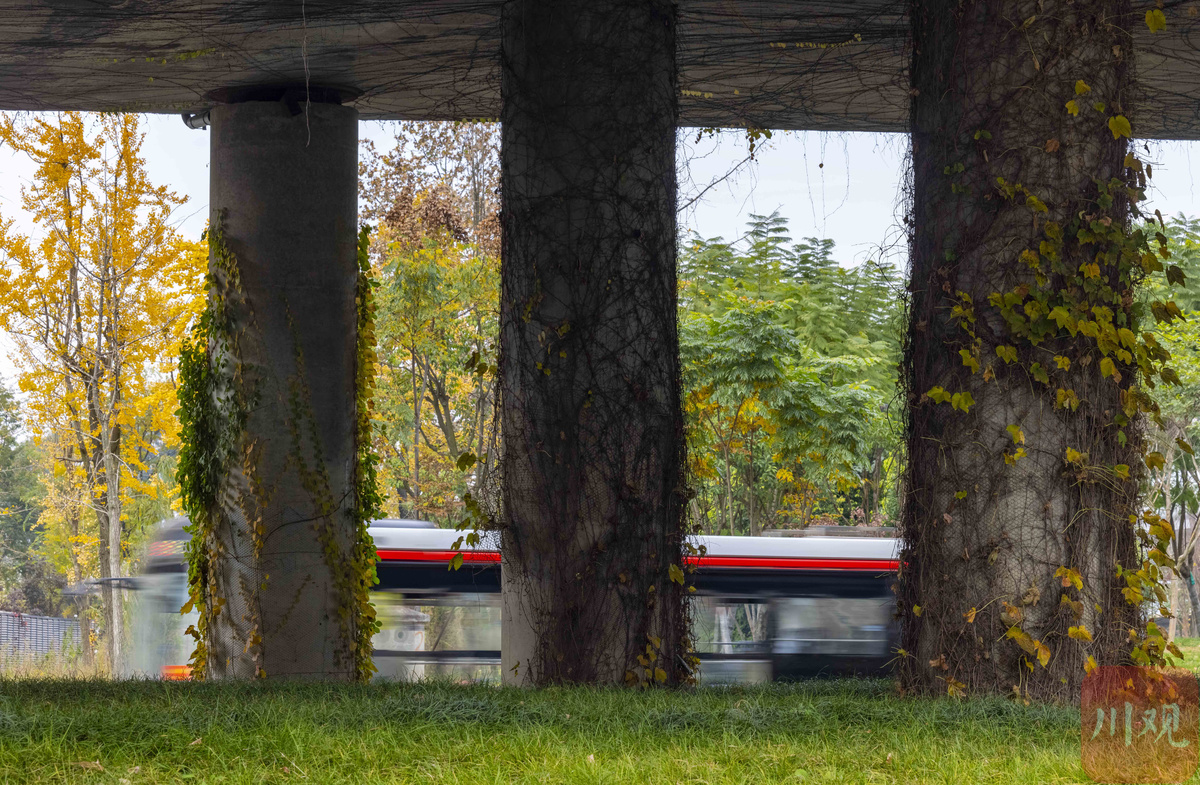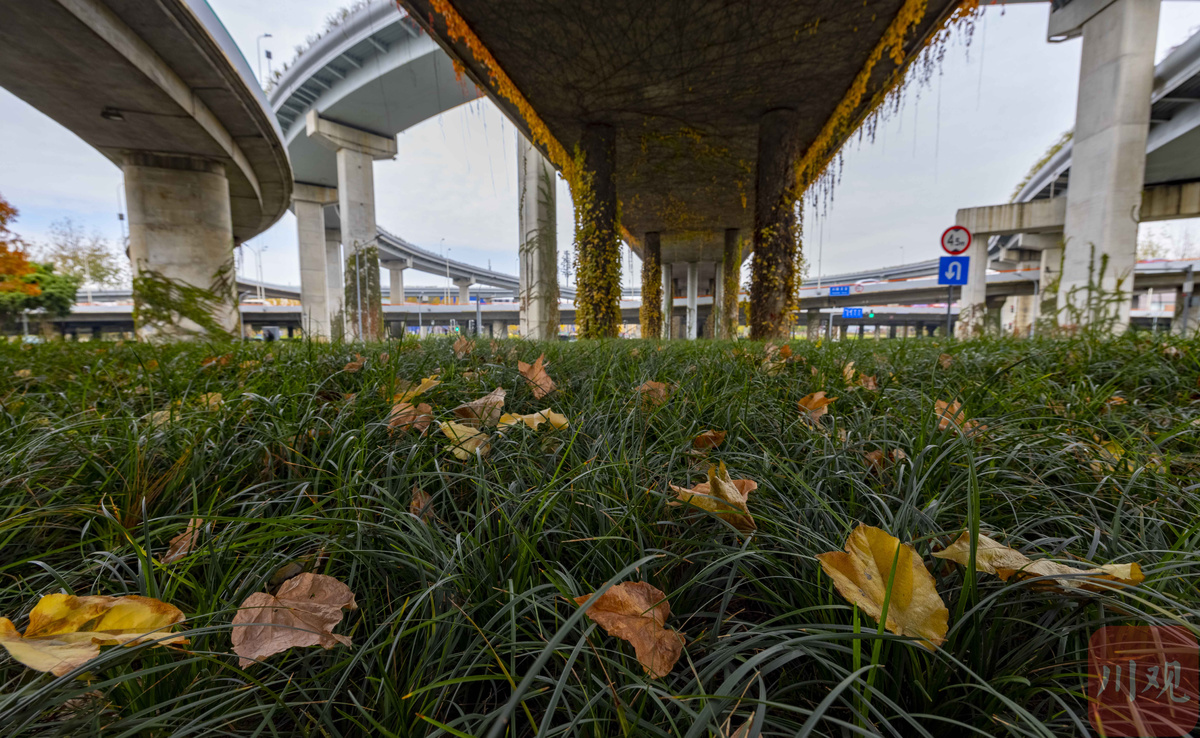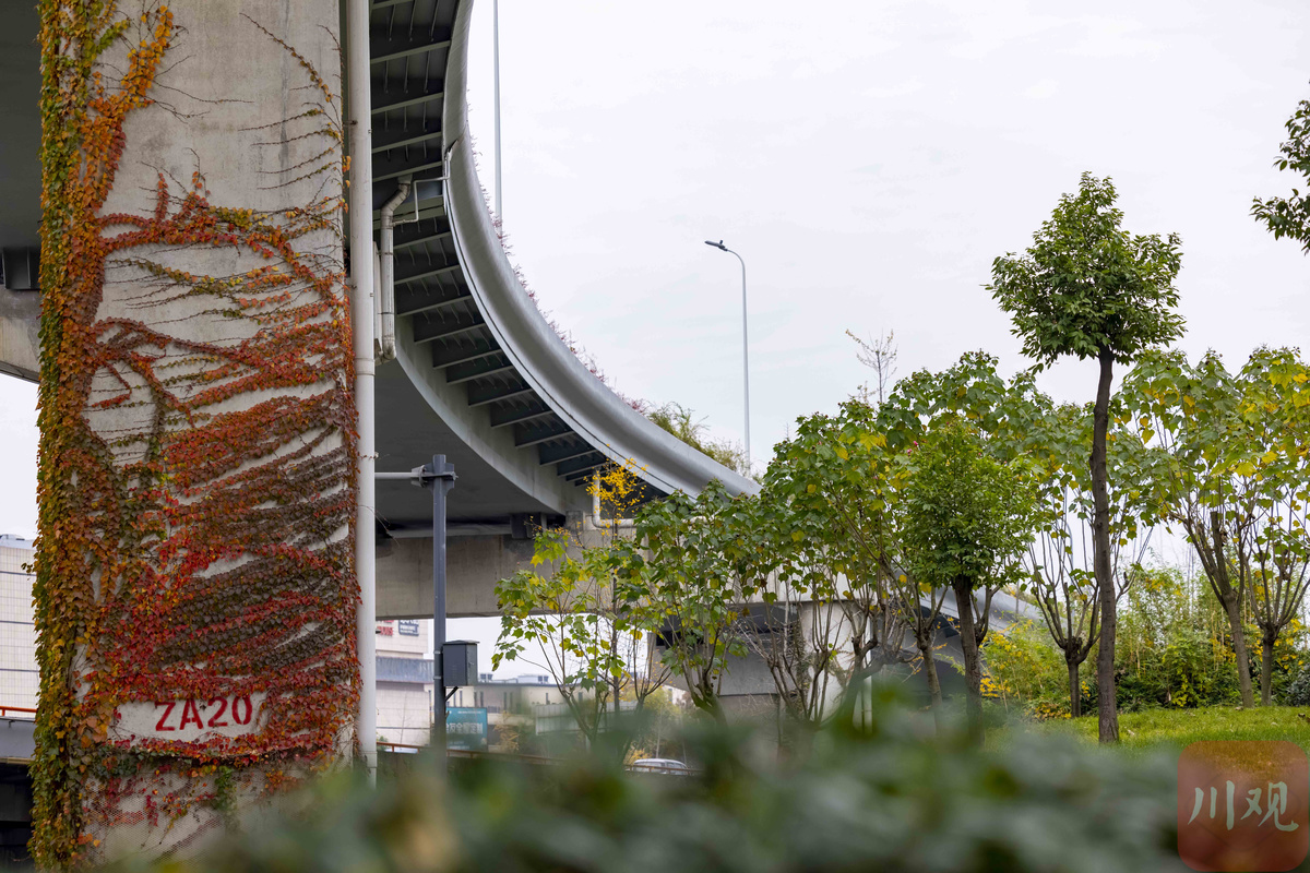 内外两侧双向总长约56公里成都二环路是重要的城市快速环线,近年来,随着二环高架立体绿化工程的打造,桥墩的“爬山虎”和桥下绿化带形成花带、绿廊交相辉映,在一年四季呈现出不同的醉人色彩。