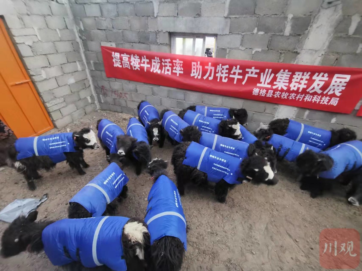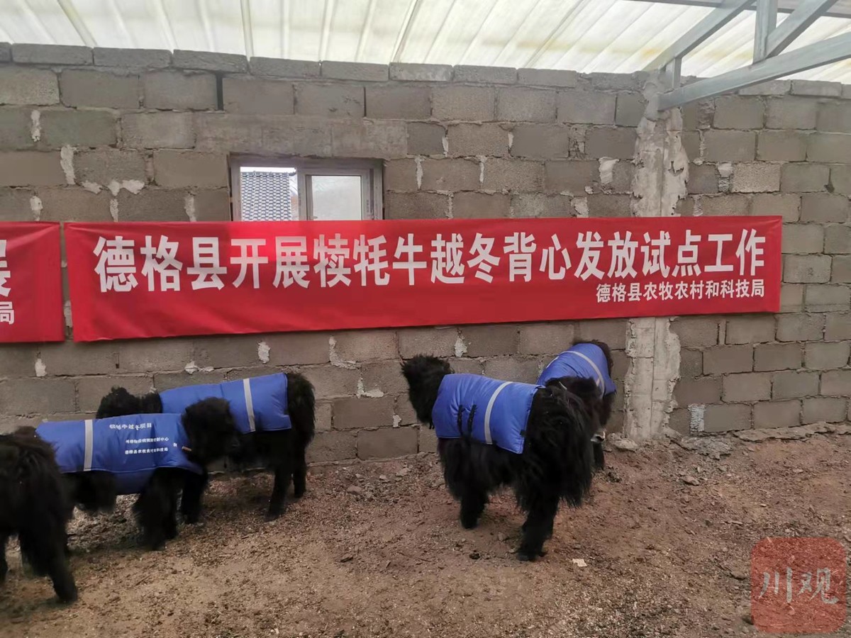 德格县牧业村海拔高,寒冷季节较长,每年10月到次年3月气温最低可达零下20℃左右,常有幼牛在极寒天气死亡。为了帮助幼牛健康过冬,德格县农牧农村和科技局联合德格县动物疫控中心,在甘孜州动物疫控中心指导下,深入调查研究后,特制了一款犊牦牛保暖越冬背心。