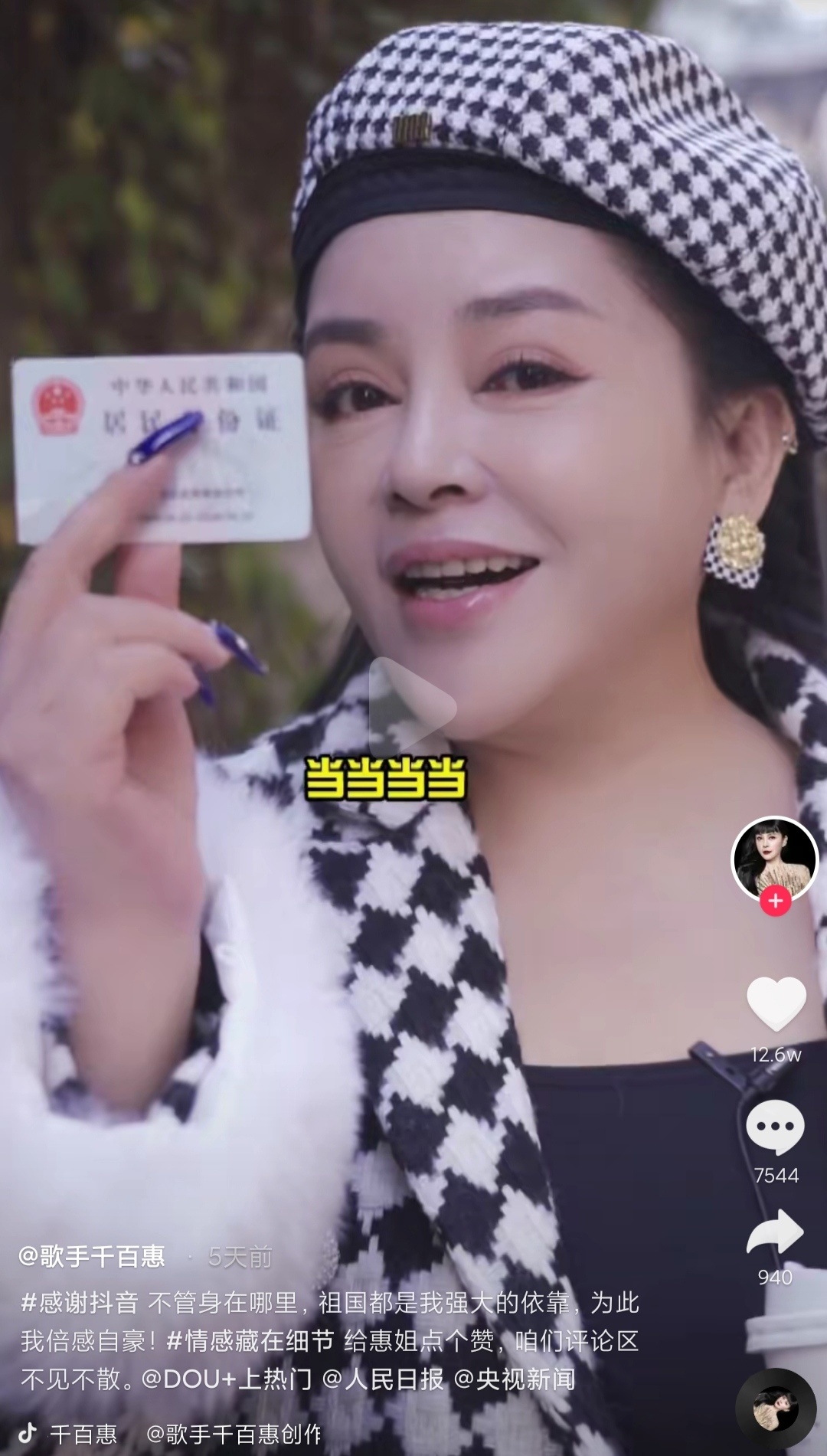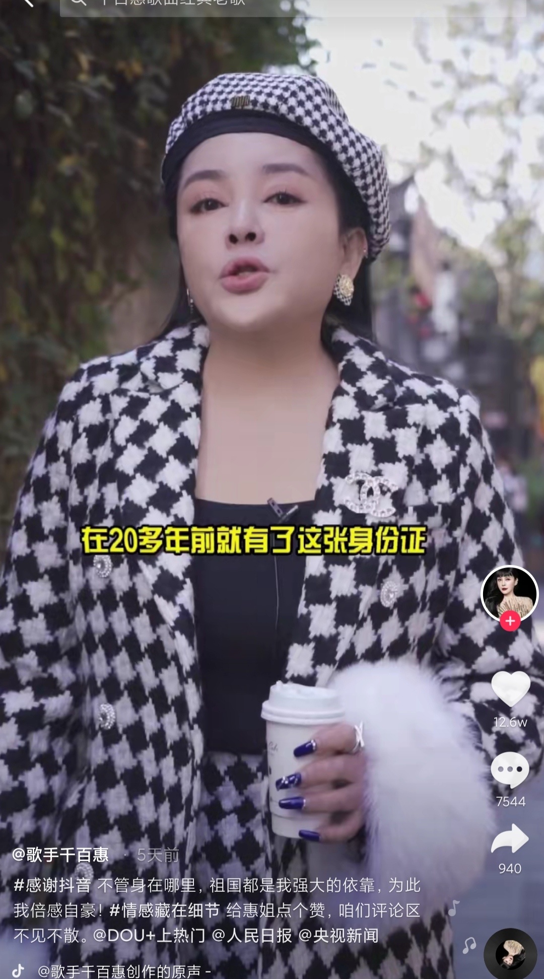 在短视频中,千百惠坦言自己20年前就有这张身份证了。据了解,千百惠这次长久地定居成都,是因为听说这边的音乐产业发展很好,同时在生活上,和家乡有相似的感觉。