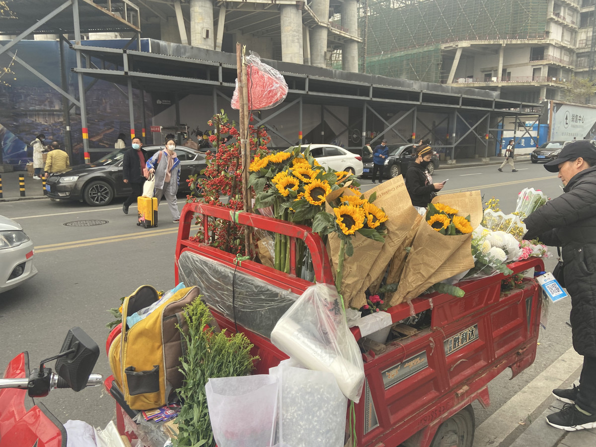12月3日,在成都三圣乡万福花市整整转了两圈,花店老板百川才买下第一把多头玫瑰,她的这次进货总共持续了三个小时,天色变黑才回到店里。