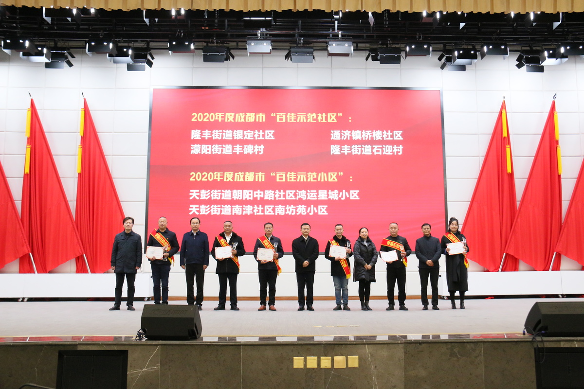 活动上有一个特别环节——对“成都市百佳示范社区(小区)”进行表彰,彭州市隆丰街道银定社区、通济镇桥楼社区、濛阳街道丰碑村、隆丰街道石迎村4个社区获评“成都市百佳示范社区”,天彭街道朝阳中路社区鸿运星城小区、天彭街道南津社区南坊苑小区2个小区获评“成都市百佳示范小区”。