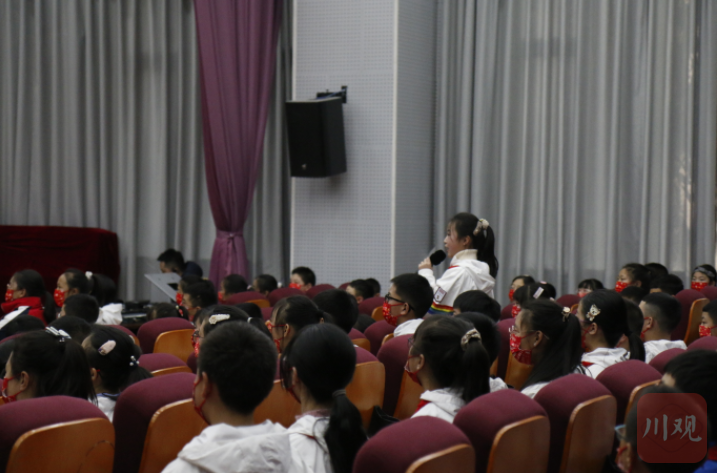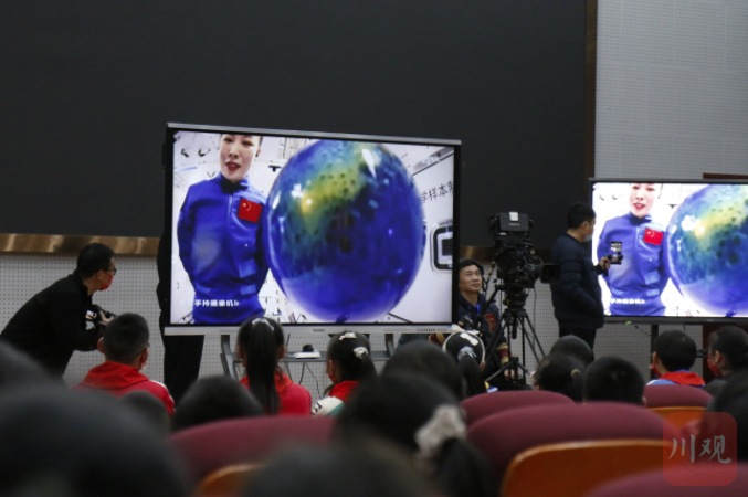 当天,汶川县第一小学校六年级6个班224名学生在学术报告厅参加天宫课堂,其中,何南霏等学生直接与航天员通话交流,12名学生进行同步实验,210名学生和部分老师现场观摹。在太空授课的太空转身、水膜张力实验和泡腾片实验等精彩环节,师生们看得津津有味,学术报告厅不时发出惊叹声和疾风暴雨般的掌声。