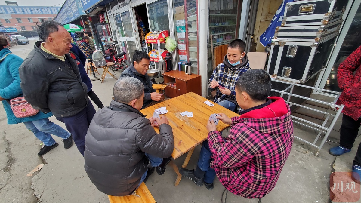 市场内,几位大哥大爷正在打牌。