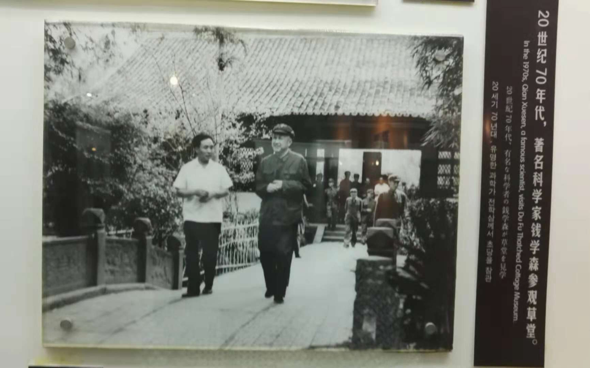 1978年春,钱学森来四川绵阳视察指导国防工程,一住就是20多天,间隙参观了杜甫草堂。他在成都吹响系统工程在中国的进军号的同时,也会在休息时间饶有兴趣的去看一场地道的川剧;他在西昌卫星基地建设现场主持现场交流推进工作会议结束后,从西昌返回成都途中,应四川省领导邀请,挽起裤脚,徒步登上峨眉山,走进农家院坝,游览四川风光。这些都表明了他对巴蜀文明的了解和热爱。