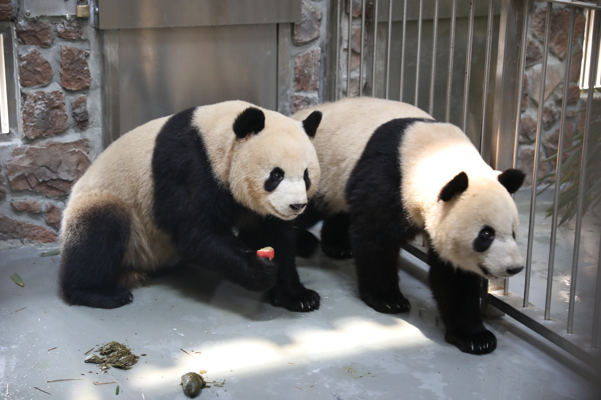 他介绍,在搬运过程中,就有个别的大熊猫就出现了这种应急反应。经过熟悉的饲养员,用两三天时间进行了一个安抚,现在基本上都已经适应了新的环境,能够正常的采食活动睡觉。