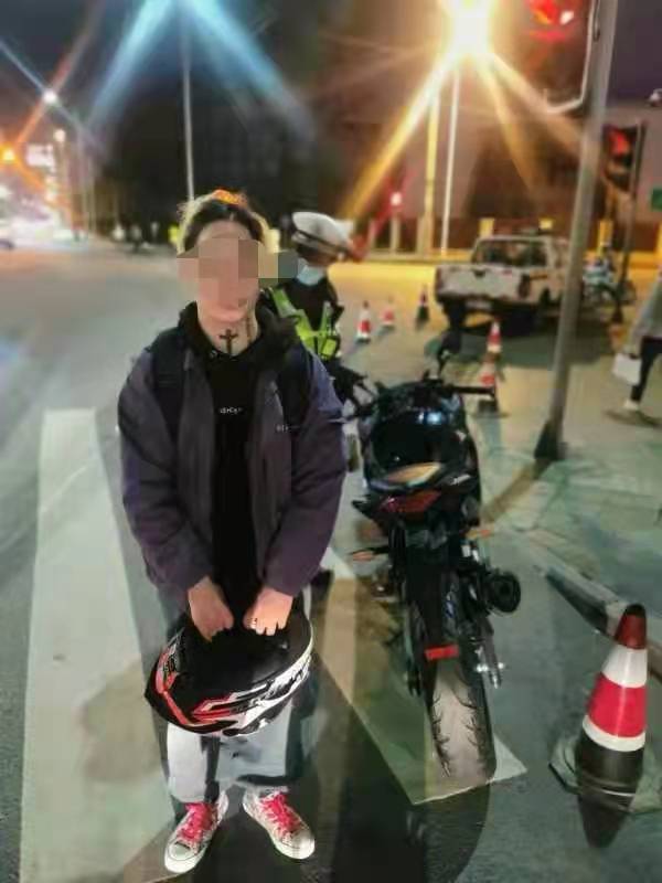21时26分,执勤民警在高新南区天府大道北段查获川A5***9的普通二轮摩托车,经现场检查,该车辆违法加装射灯和实施机动车违反禁令标志指示的违法行为,民警依法对驾驶人侯某进行处罚,责令将车辆恢复原状。