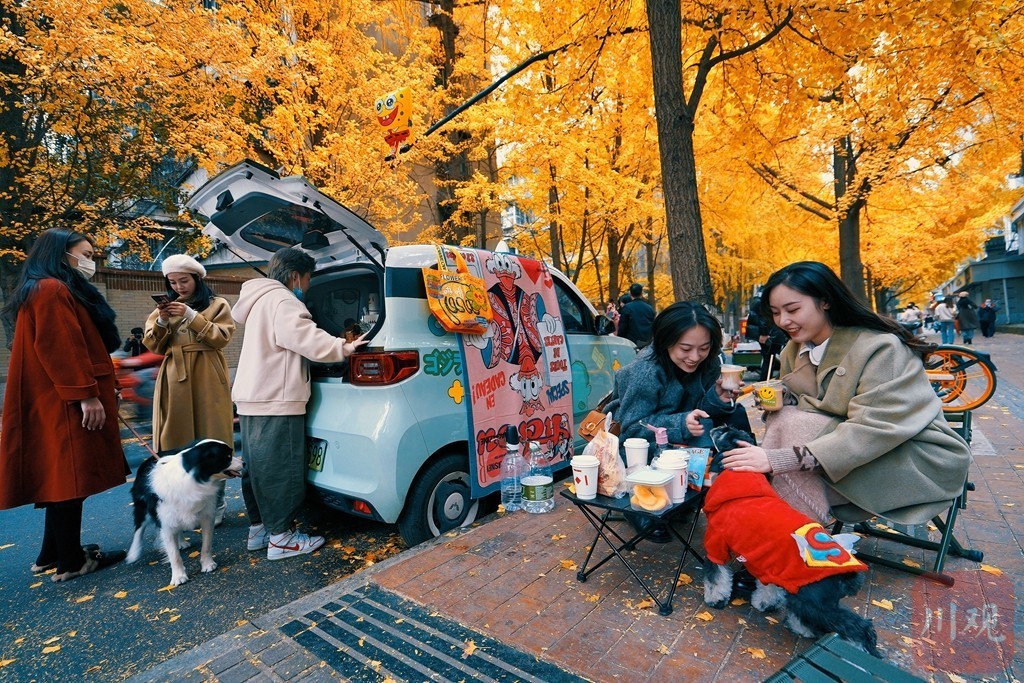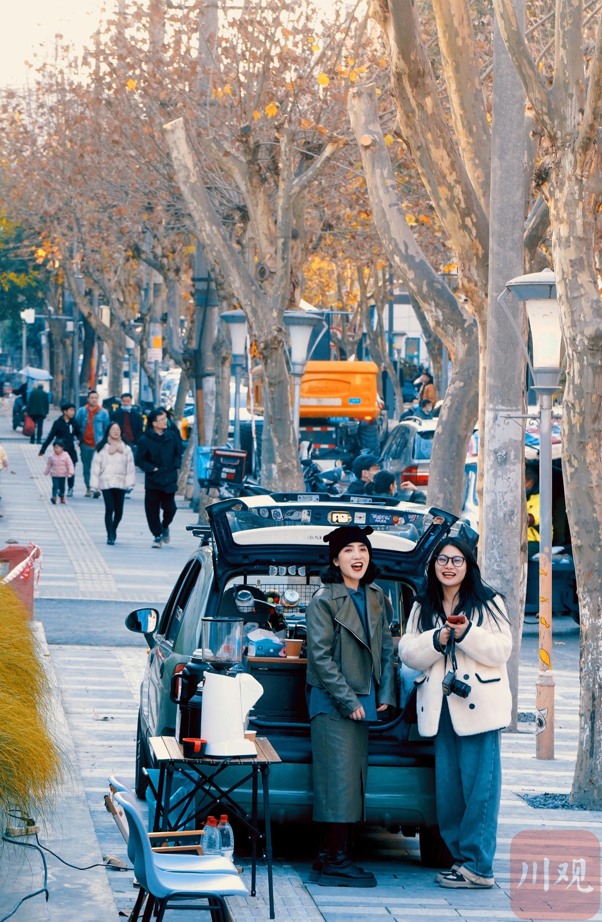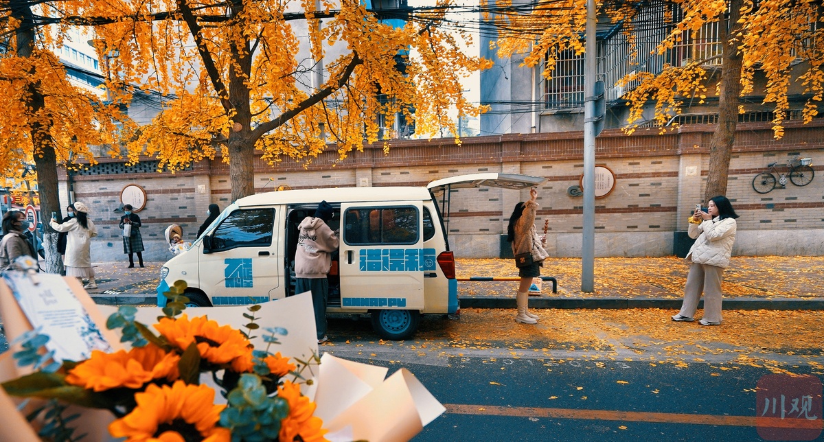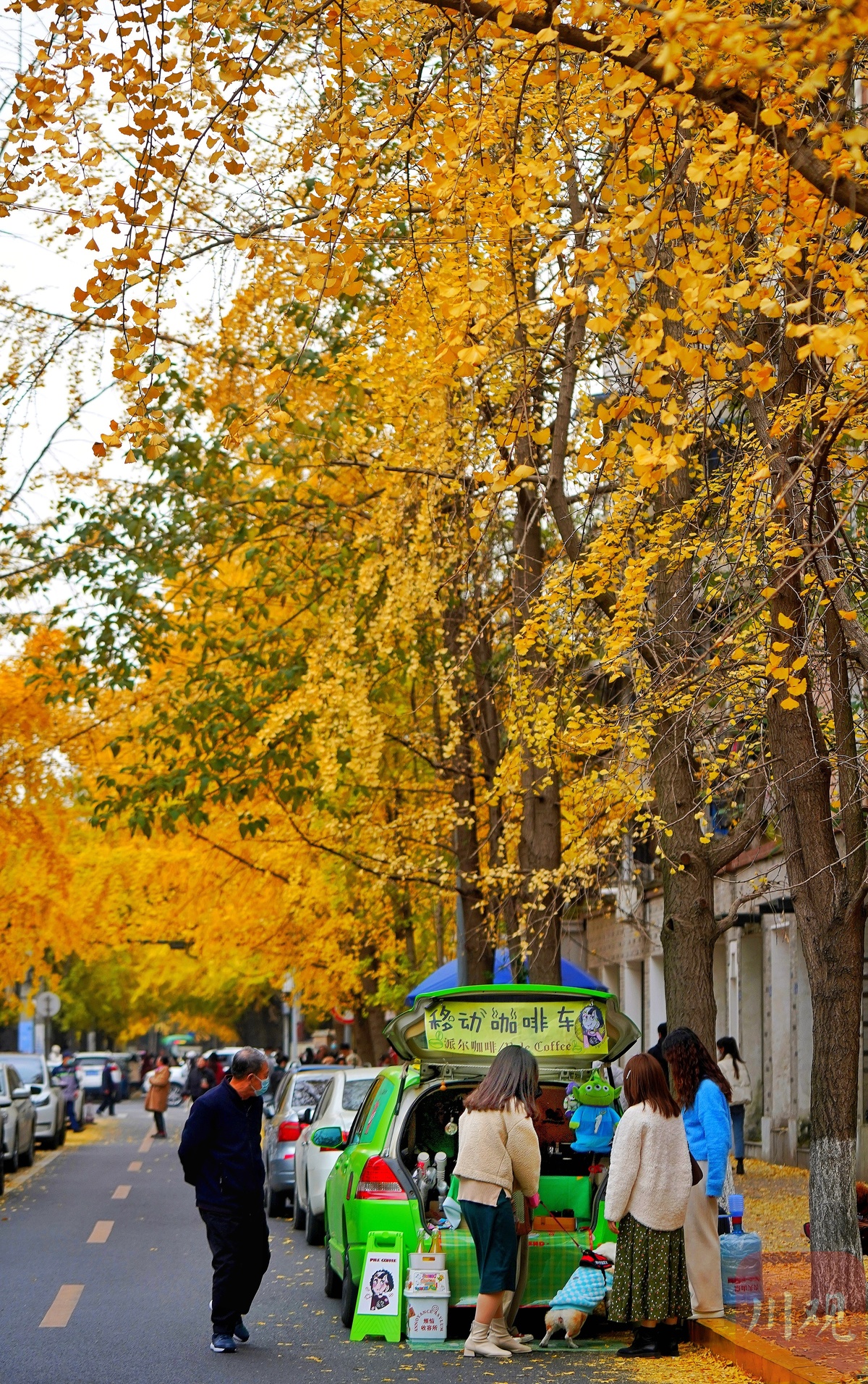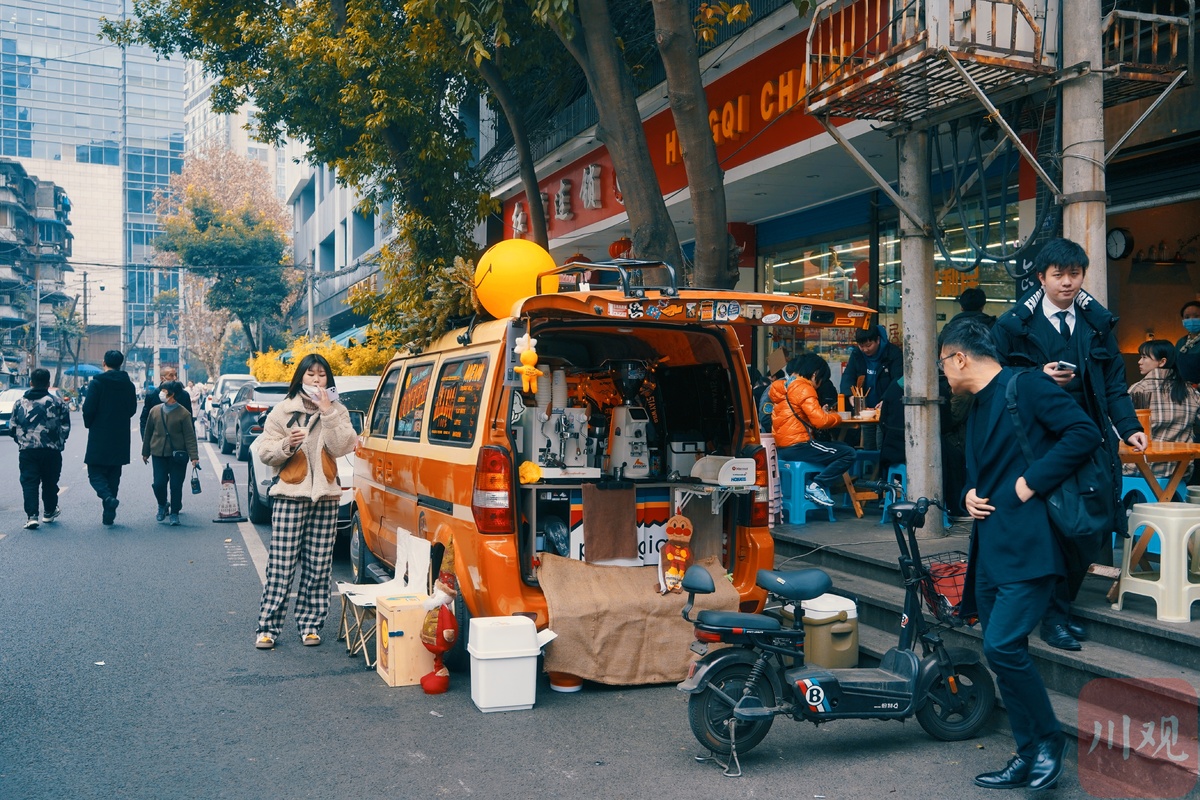 11月25日,王派儿的咖啡车在成都银杏街上摆摊。