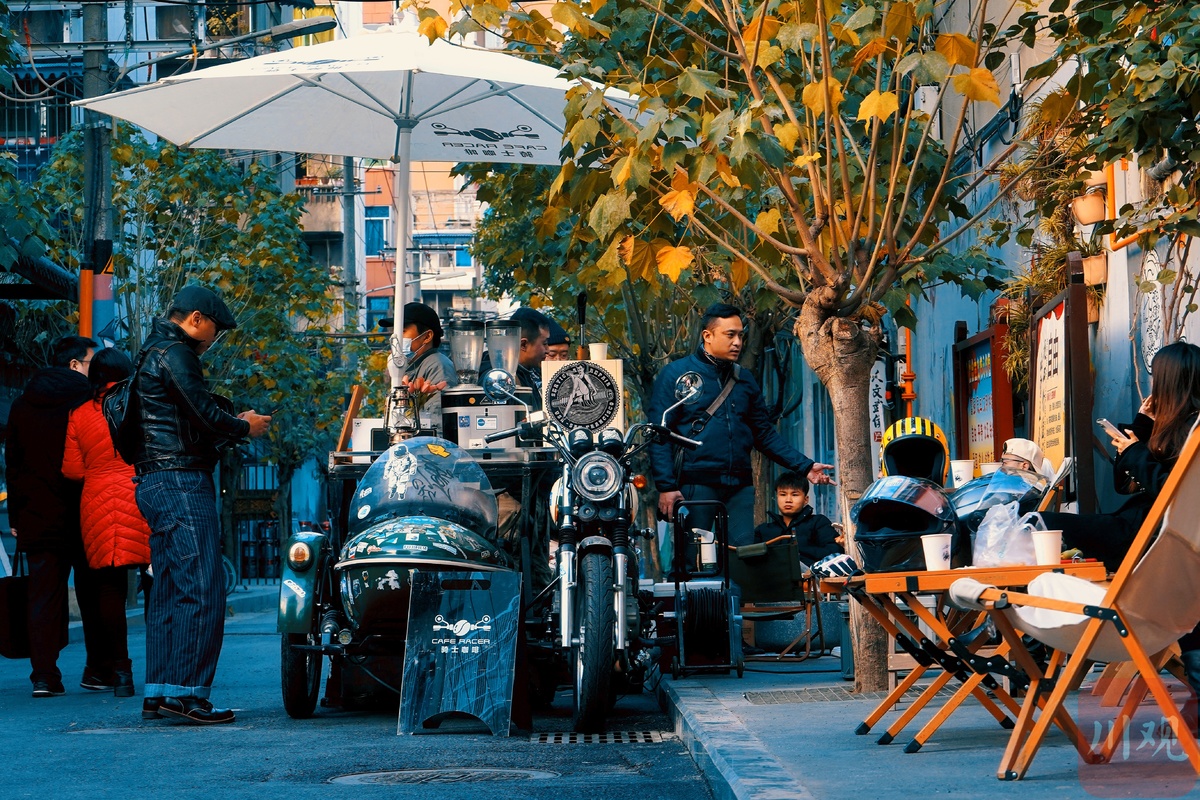 12月18日,成都目前唯一的摩托咖啡车“骑士咖啡”停在成都玉林四巷。