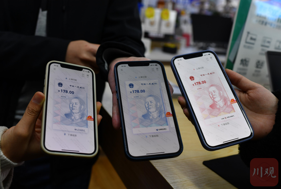 3月3日,3位成都市民展示中签的数字人民币红包。当天零点,成都市政府联合京东面向市民发放数字人民币红包。