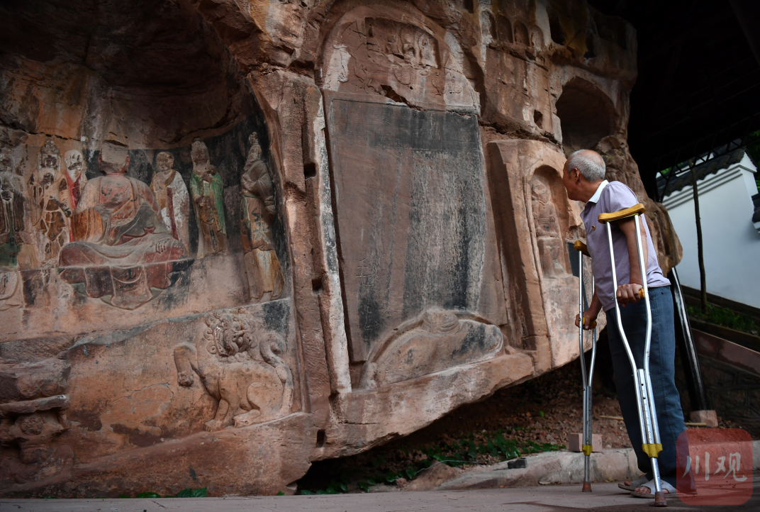 8月18日,杵着拐杖的肖太发老人在巡查文物“北周文王碑”,在半个多世纪里老人一直守护着国宝石碑。