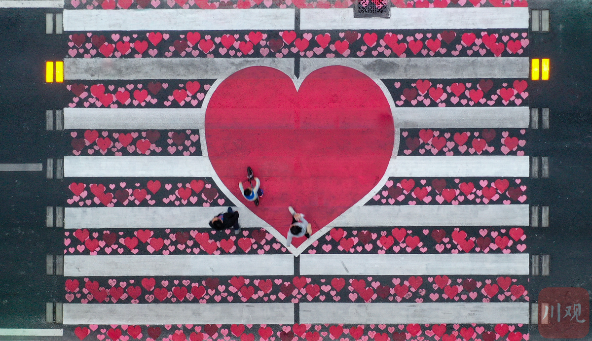 4月28日,重新打造完成的爱情斑马线亮相成都市合江亭,现在这里已经成为游客到成都游玩的打卡地。