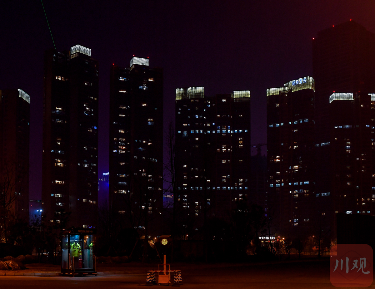 2月11日,农历大年三十,成都。一位物管人员在岗亭上值班。为了减少大规模人员流动,2021年的春节四川多地号召人们原地过年,新词“原年人”应运而生,成为继“打工人”之后的全民热词。