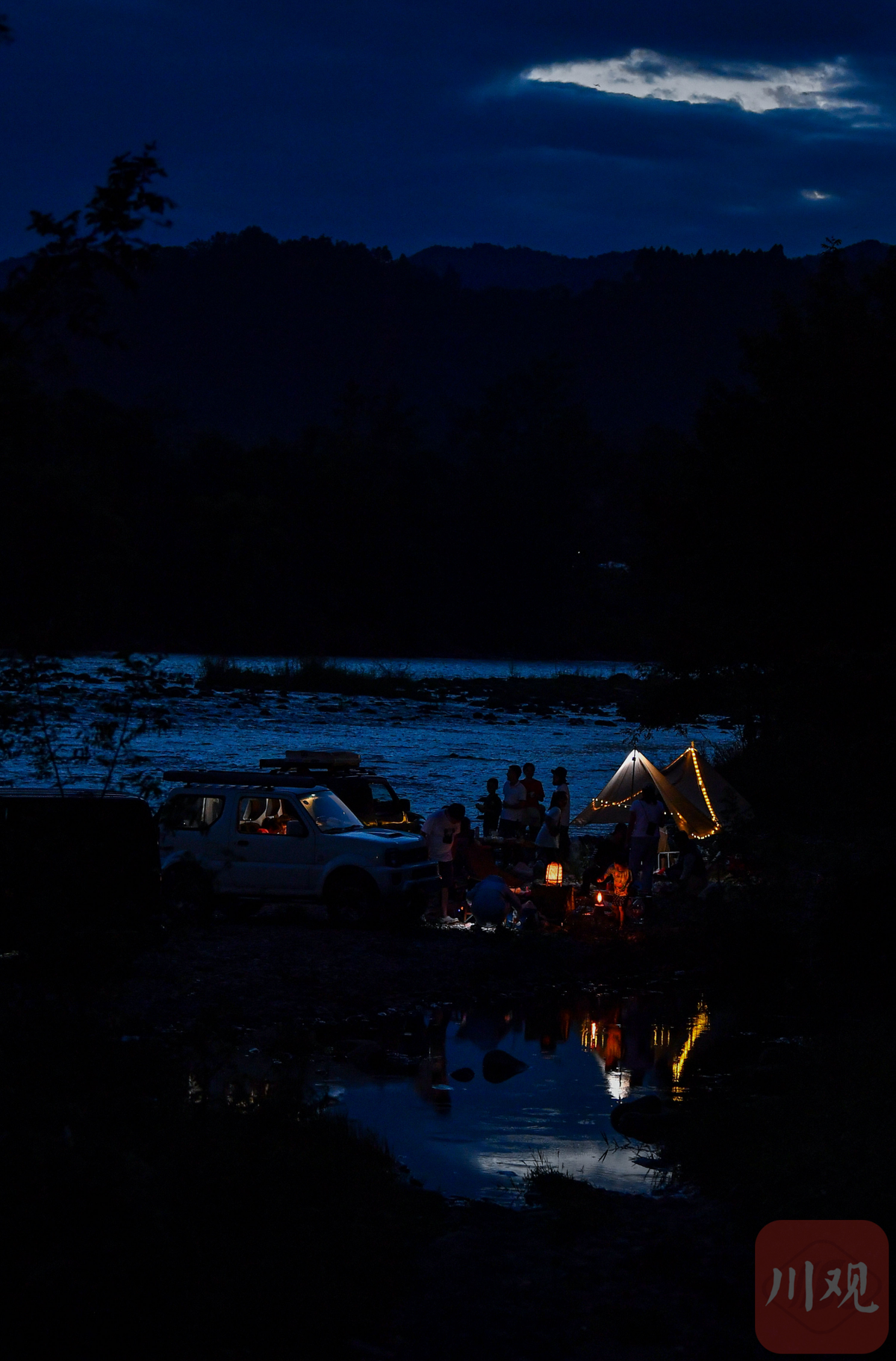9月19日,成都市大邑县,市民在河边进行露营聚会。到大自然中野炊和露营成为了今年流行的生活方式。