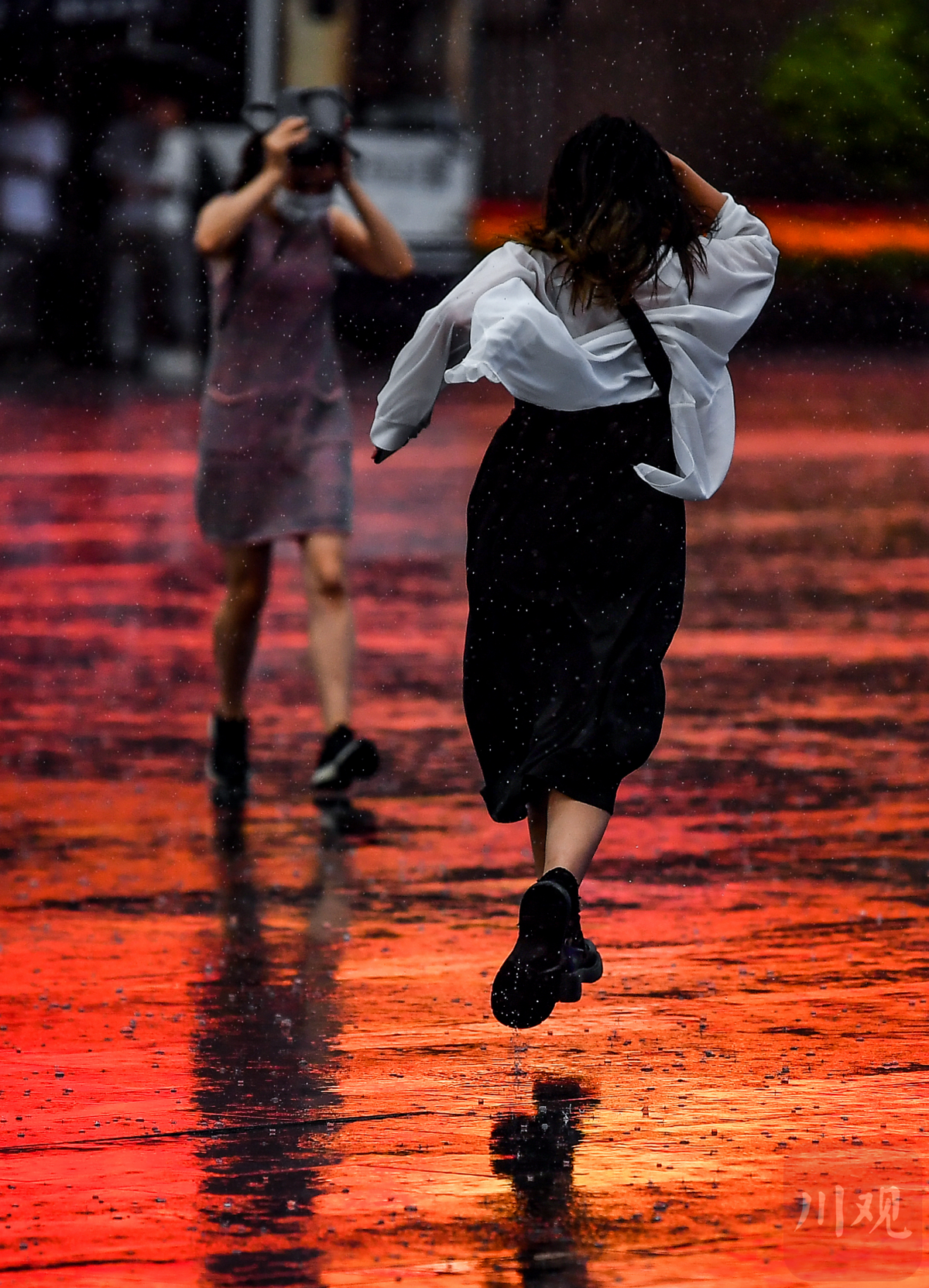 7月1日,一位在大雨中奔跑的女孩子。