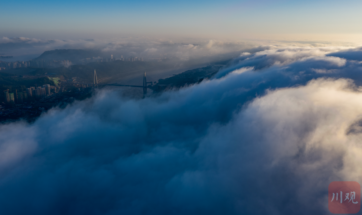 9月29日,宜宾市叙州区,一场平流雾出现在市区。