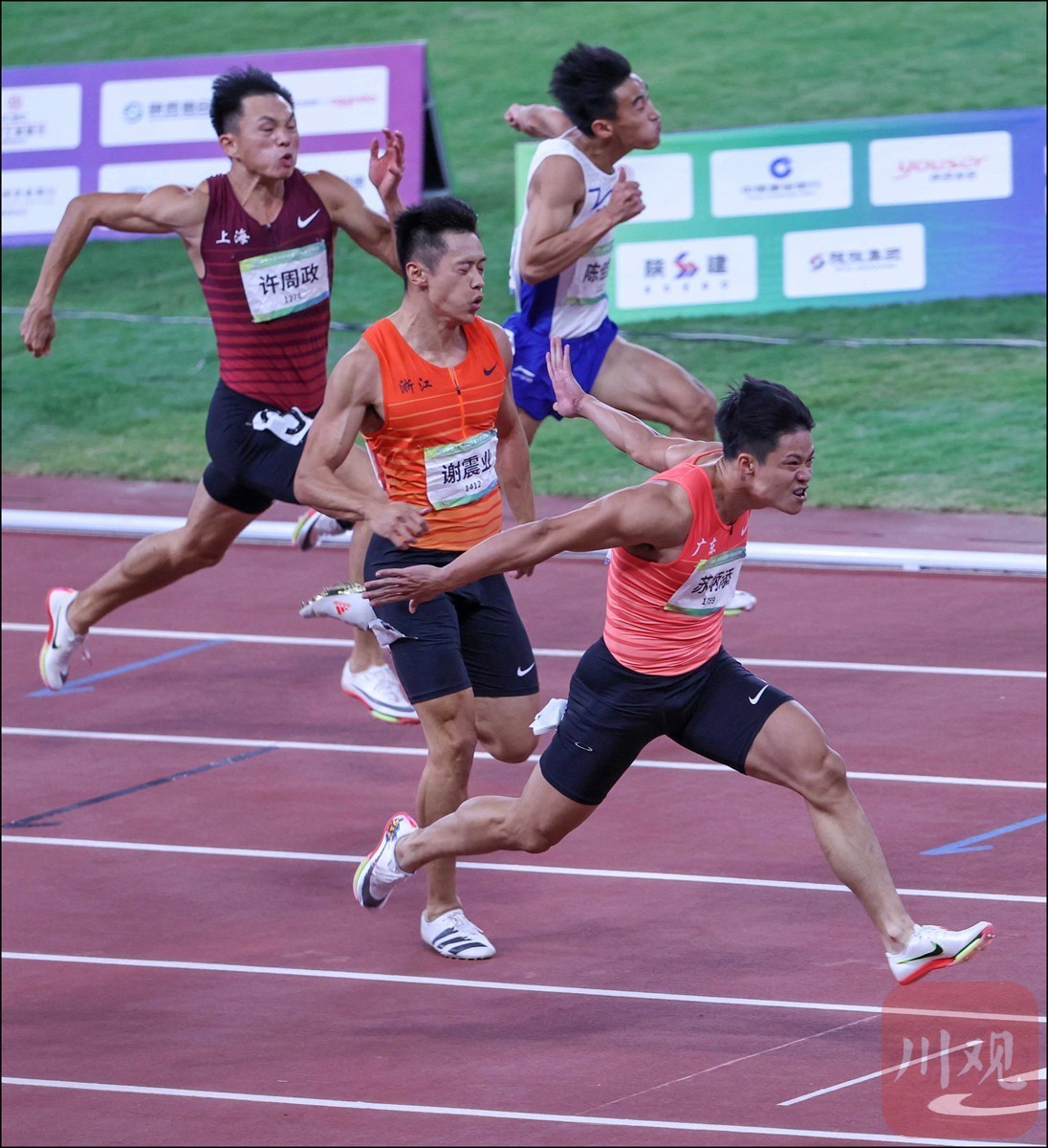 9月21日,第十四届全运会田径男子100米决赛在西安奥体中心体育场进行,亚洲纪录保持者、“中国飞人”苏炳添跑出9秒95的好成绩,拿下个人首枚全运会金牌,并创下新的全运会纪录。