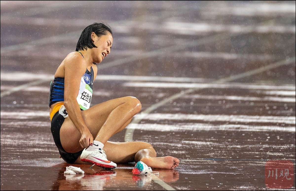 9月25日晚,在第十四届全运会田径项目女子七项全能比赛后,四川运动员任世美在雨中跑道上艰难脱掉战靴,以5791分的成绩获得亚军。来自芦山县太平镇钟灵村的农村姑娘任世美实现了自己的全运梦。