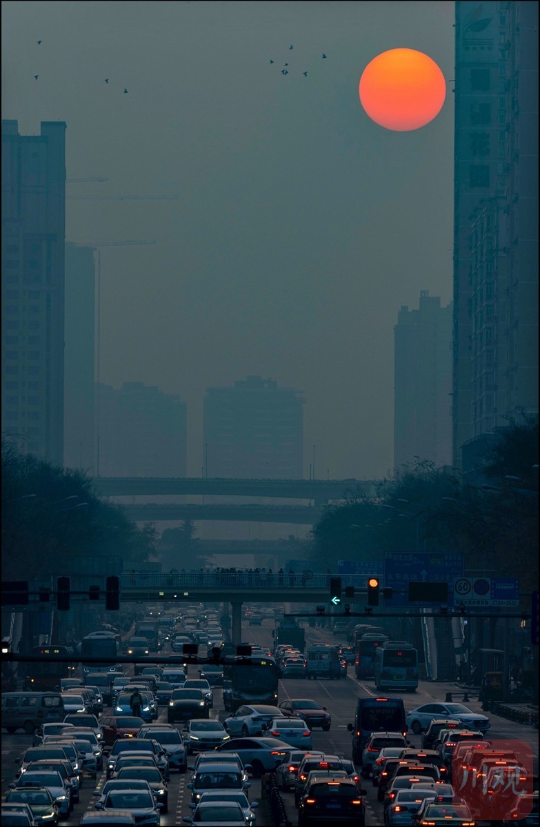 12月21日,冬至。早上8点12分,成都市蜀都大道正东方,一轮红日从城际线的楼宇间冉冉升起。
