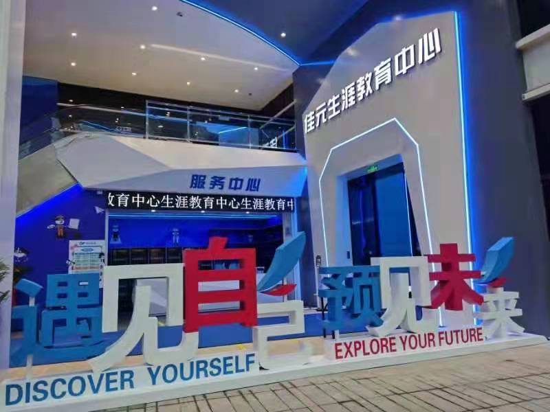 在“佳元生涯教育中心”门口,川观新闻记者看到了八个大字“遇见自己、预见未来”。句子文绉绉的,记者探访之后才知道,意思是通过接触五花八门的职业体验,经历一些游戏和课程,你会对自己的性格、特长有一个认知,对未来的职业生涯有一个预设。