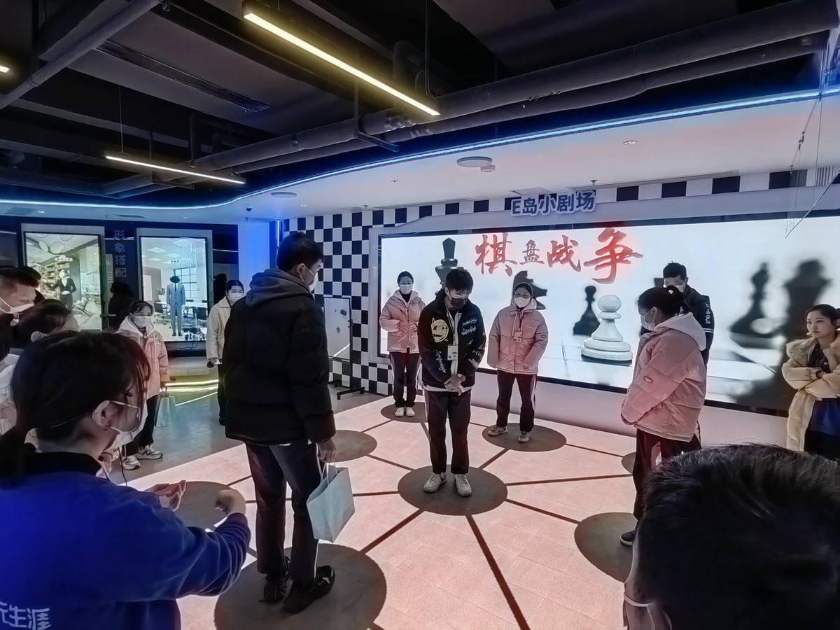 这里的棋盘战争,用人当棋子,学生们分成男、女两队对抗了多轮,总是先走的男队获胜。