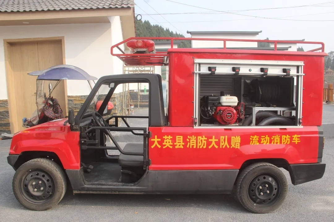 新成立的凤阳村微型消防站,车辆、器材配备均由大英县消防救援大队无偿支持。目前共配置小型消防车1辆,手抬机动泵1台,消防头盔、消防手套、灭火防护服各4套,消防水带、水枪、灭火器、消火栓扳手、过滤式消防自救呼吸器等若干。