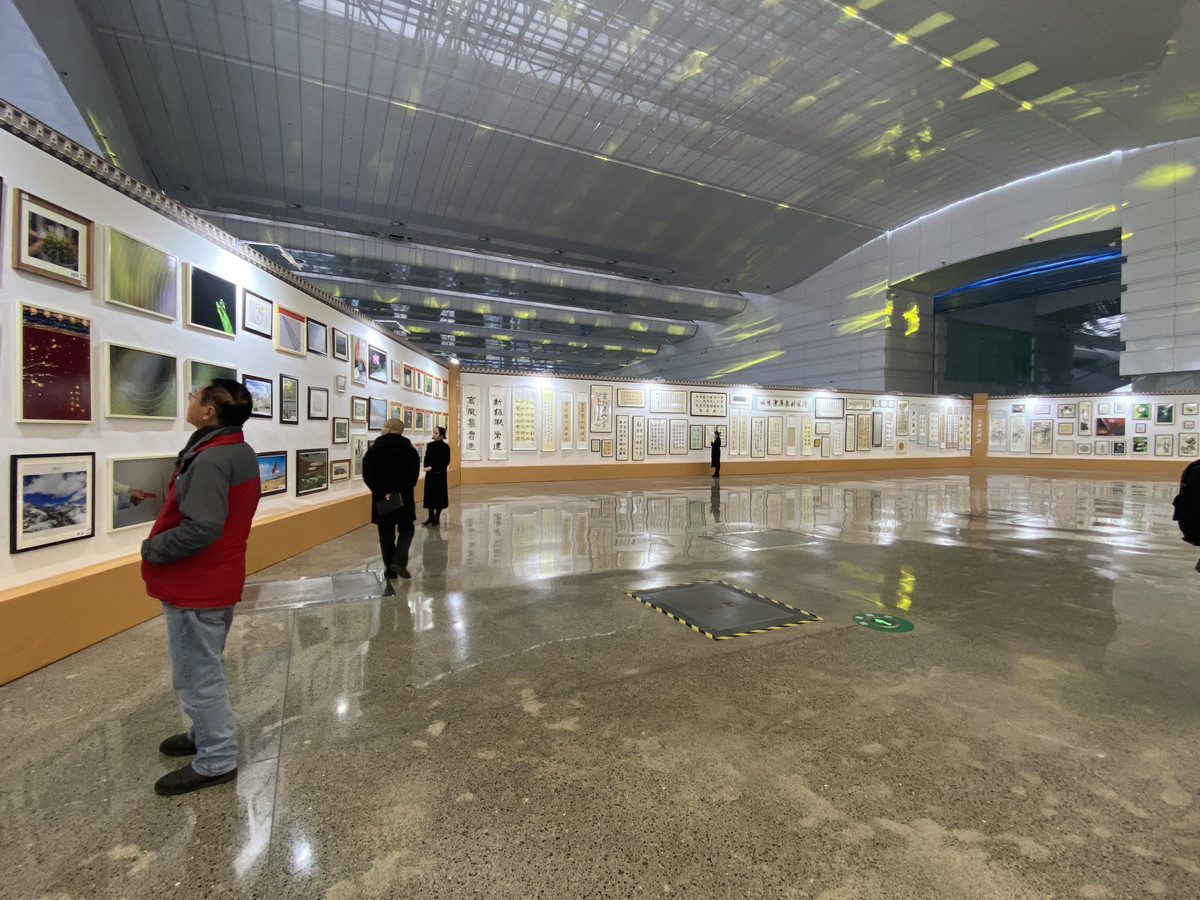 此次展览分为摄影、书画、绘画以及漫画创意展区,展出了18户宜宾市属国有企业党建工作成果以及摄影、书法、美术、创意作品。