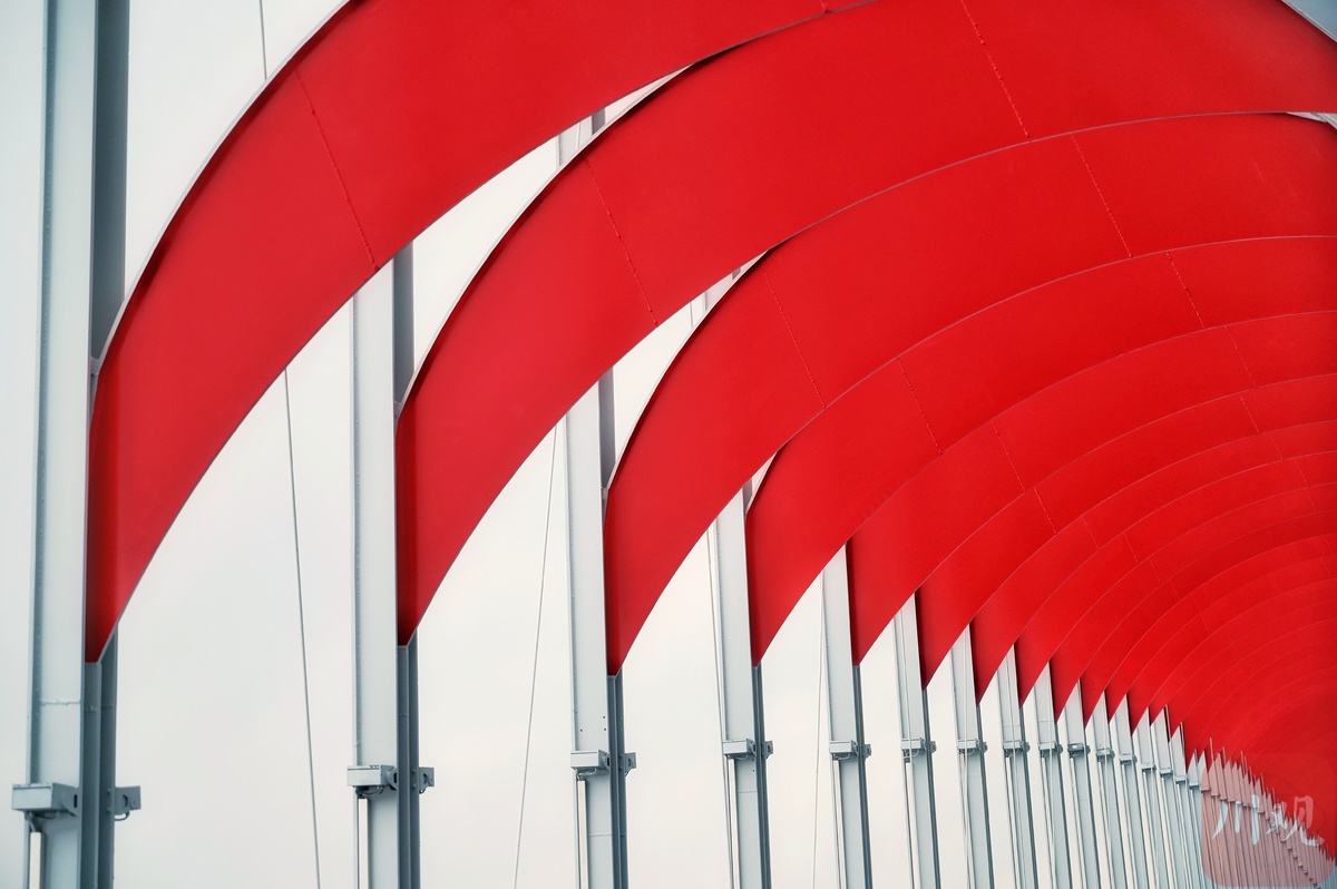 该桥梁的创意源于新娘的头纱,整体提取了头纱中蕾丝的轮廓曲线