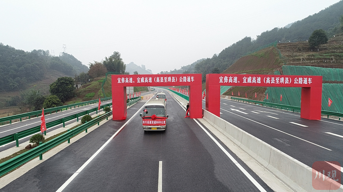 12月31日,省交通运输厅发布消息:宜宾至彝良高速公路(四川段)、宜宾至威信高速公路高县至珙县段、内江城市过境高速公路于当晚24时建成通车。至此,四川高速公路通车里程突破8600公里,新增1条南向出川大通道、达到26条,结束了宜宾市高县、筠连县不通高速的历史,川南经济区实现“县县通高速”。