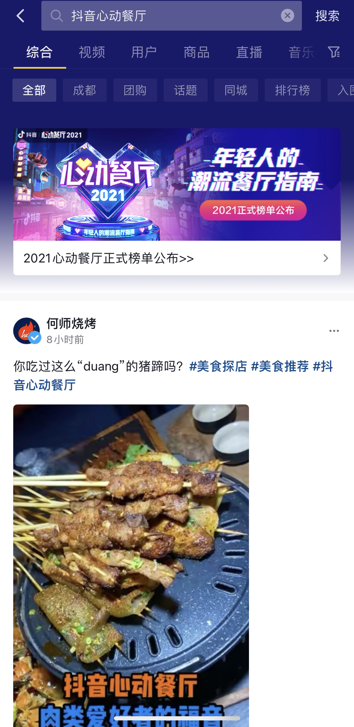 2021年,抖音心动餐厅已扩大到20城,话题曝光已超过900亿。