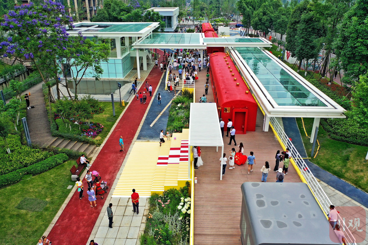 火车元素是该公园婚姻登记的最大亮点,呼应成华当代工业文明;选址二仙桥公园,呼应“和合二仙”千年爱情传说,通过现代化的规划设计,呈现出这座公园中的爱情列车。