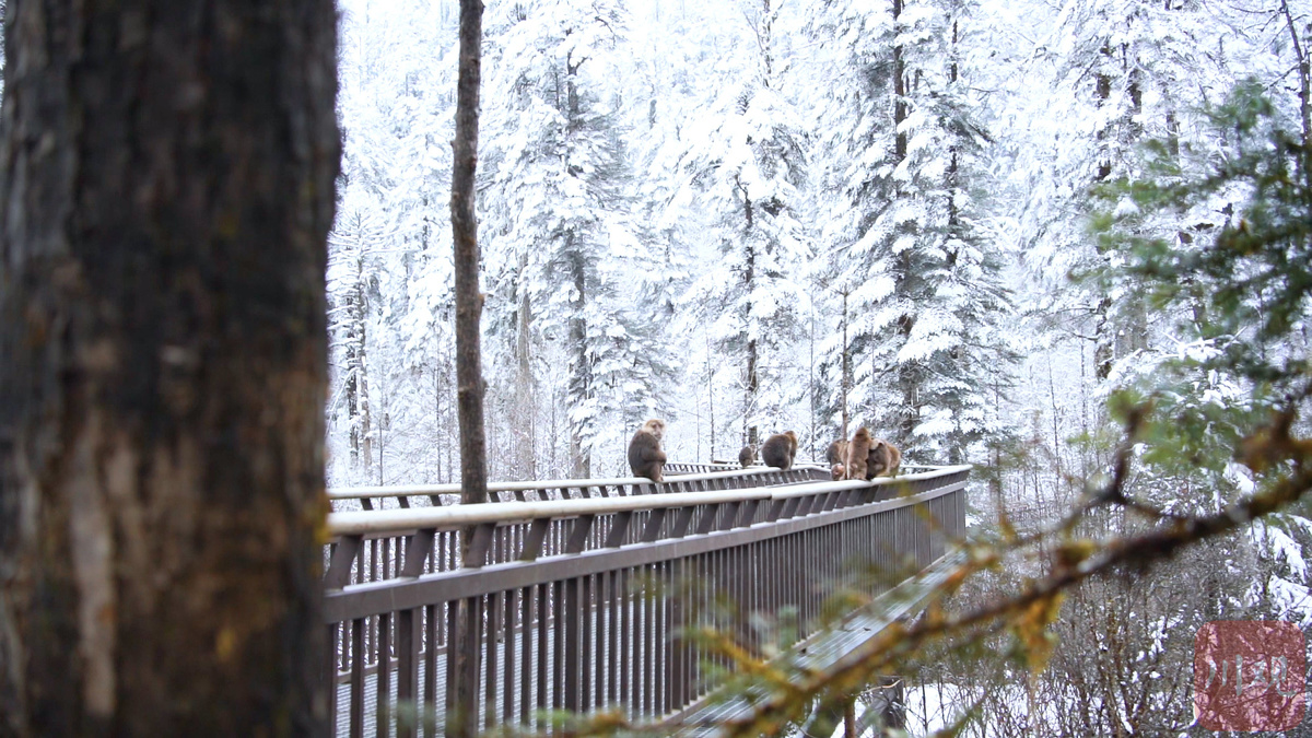 1月3日,雪后的海螺沟银装素裹。当游人进入一号营地后,会经意与不经意间,在公路上、树林里,温泉池附近与猴群不期而遇。