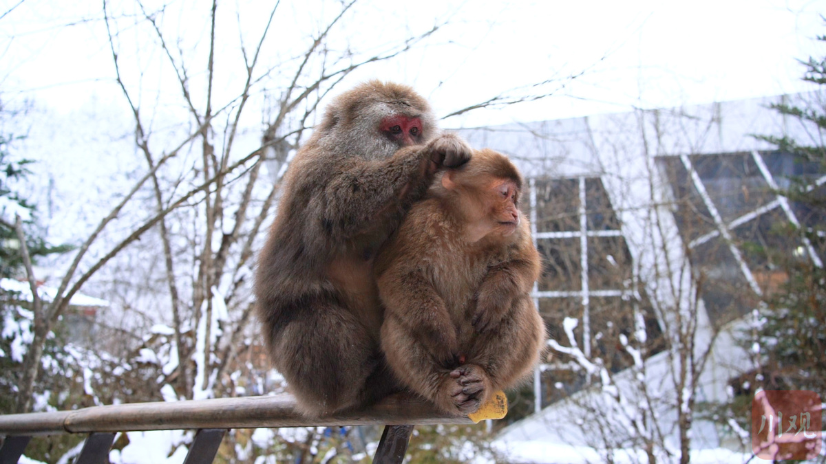 川观新闻新闻记者近距离用升格镜头的拍摄方法记录下了猴群们在冬日里的姿态,面对镜头,它们极具镜头感,很是呆萌可爱。