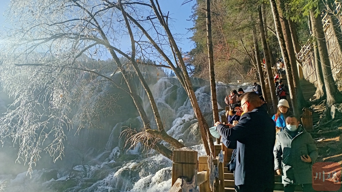 小寒挡不住人们玩乐冰雪的热情,在羌谣藏舞中,1月5日上午,九寨沟第十七届国际冰瀑旅游节开幕式在九寨沟风景名胜区珍珠滩瀑布举行。开幕式以天然冰瀑为背景,在歌曲《神奇的九寨》嘹亮歌声中拉开帷幕。