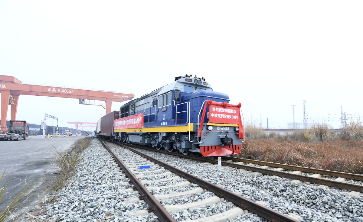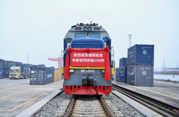 1月5日10时许,X8086次中欧班列从德阳国际铁路物流港黄许镇站缓缓驶出,满载着50个40英尺集装箱的服装鞋帽、运动户外用品、数码产品等货物,开往俄罗斯莫斯科别雷拉斯特物流中心,标志着德阳始发的第100列中欧班列顺利开行。